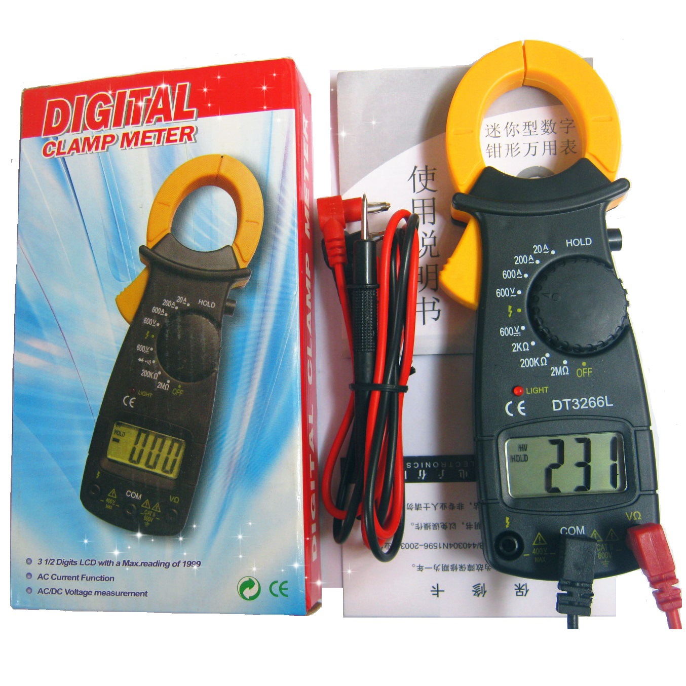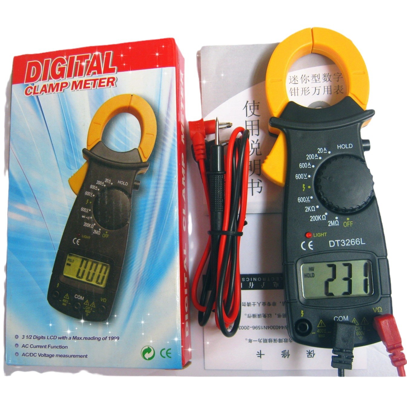 Цифровой клещевой мультиметр DT3266L высокой точности, для измерения переменного и постоянного тока, с полной защитой от перегорания.