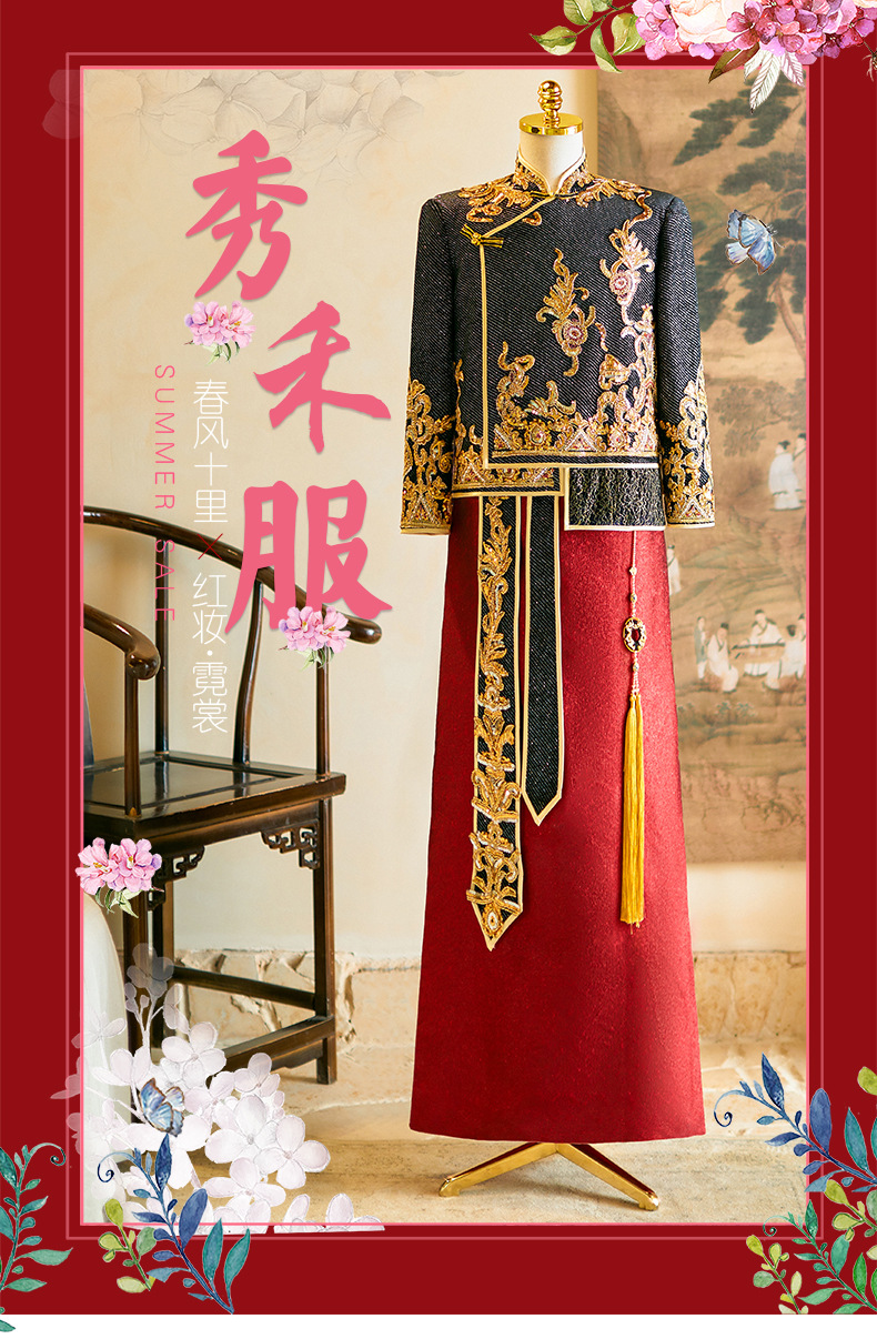 Черный асимметричный мужской костюм Xiuhe, новинка 2025 года, свадебное торжественное платье в китайском стиле, элегантный халат с драконом и фениксом для похудения