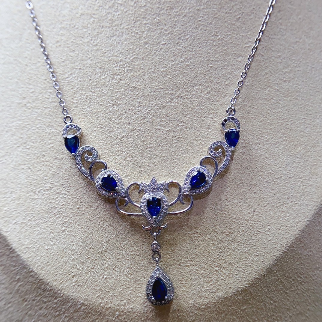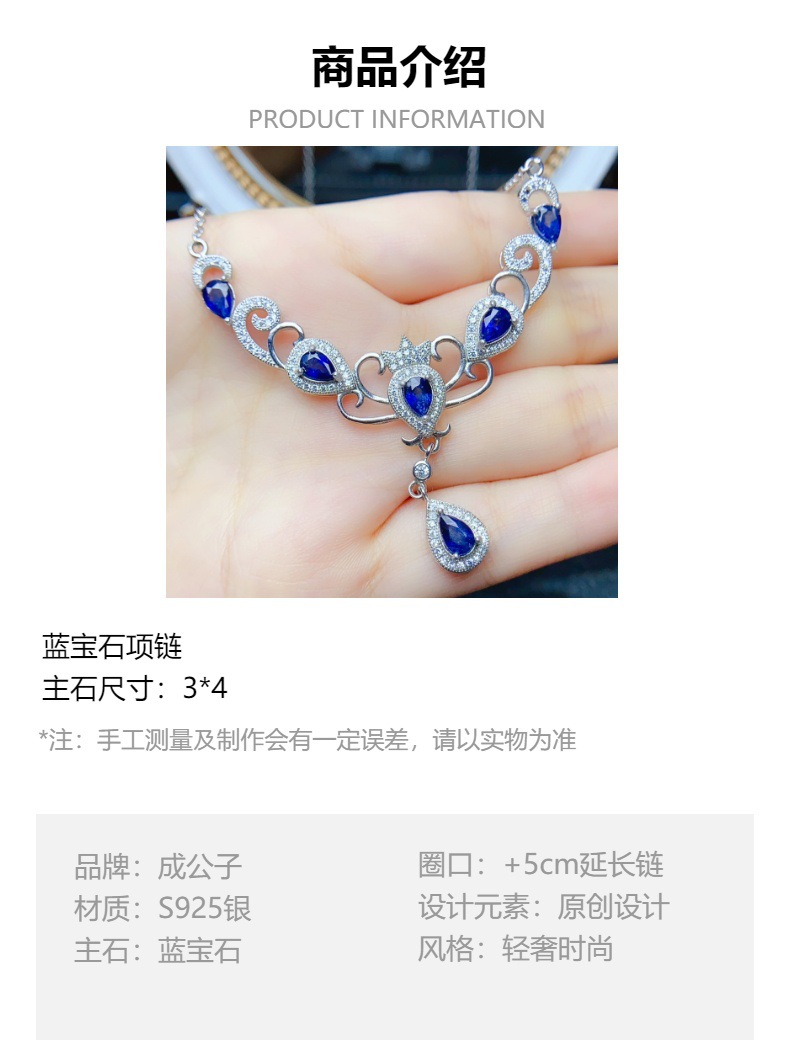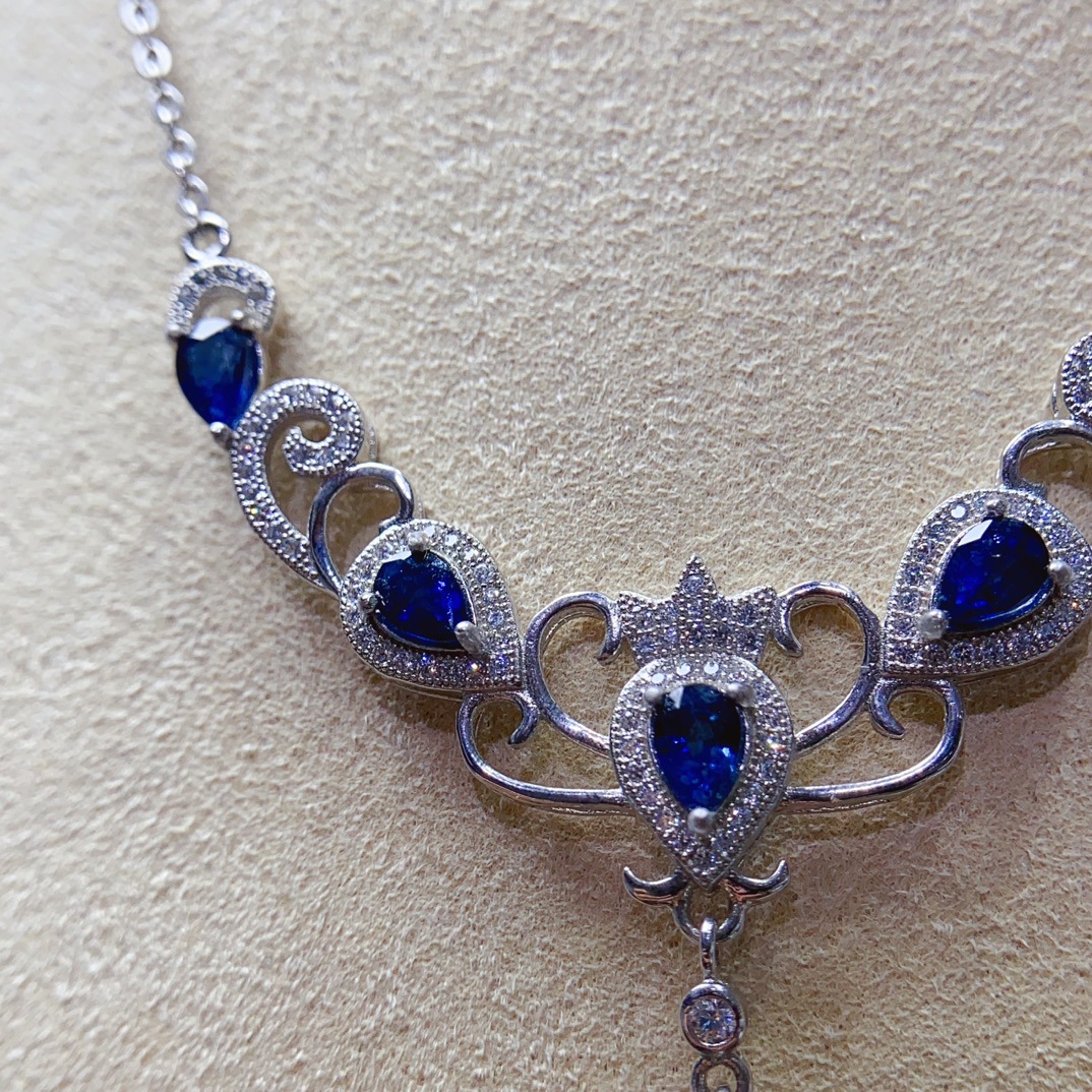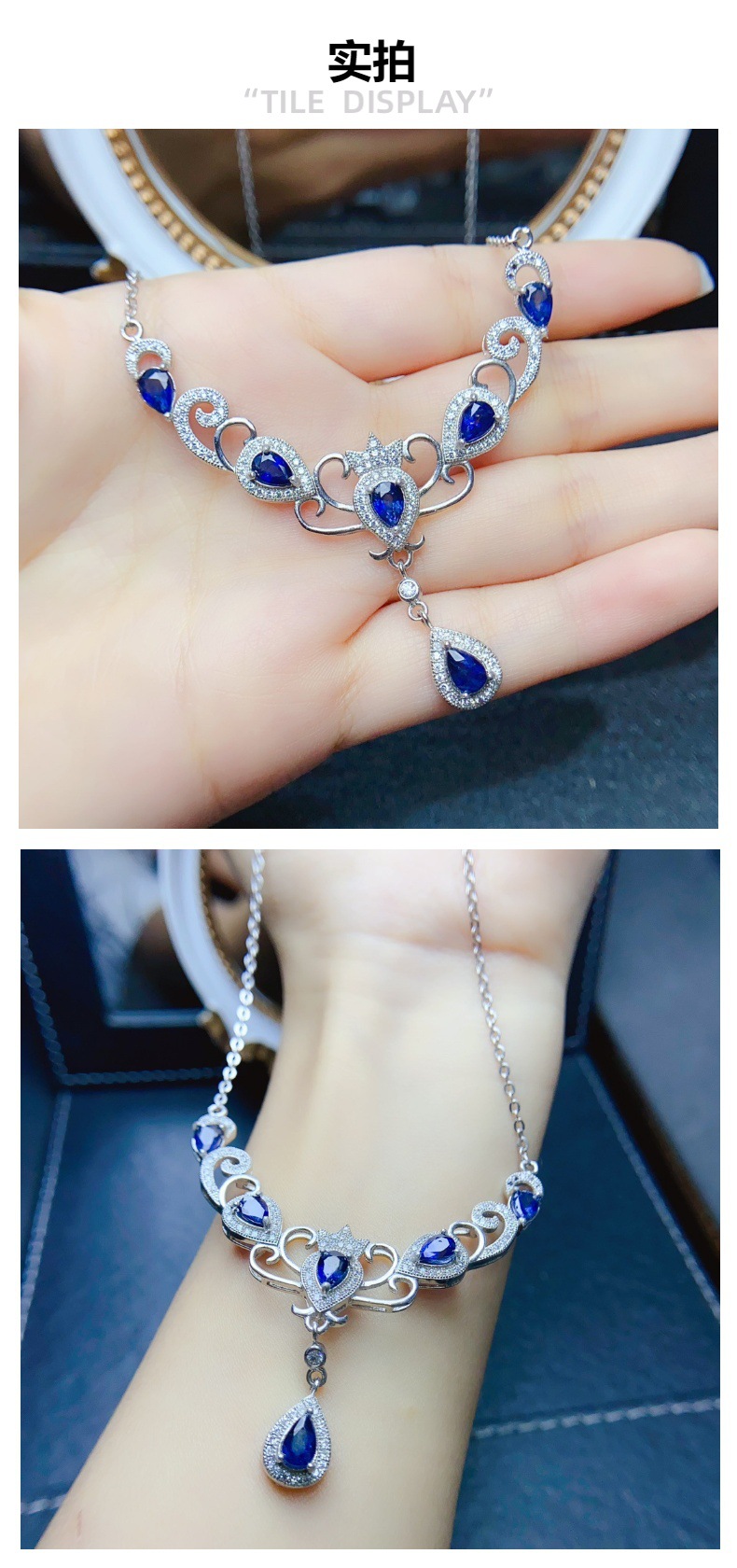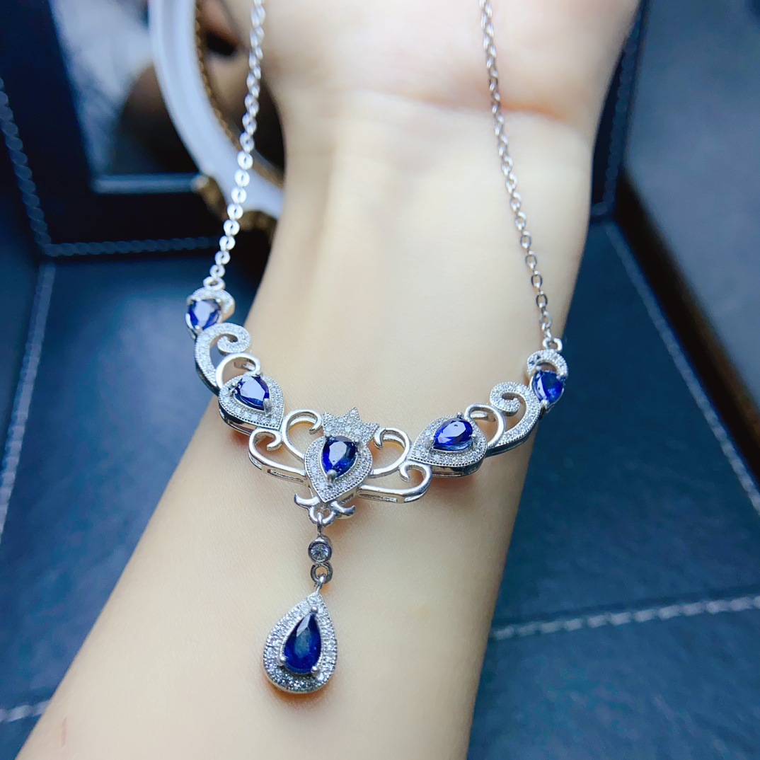 Заводская оптовая продажа натурального сапфирового ожерелья S925 Серебряная инкрустация основного камня 3*4 Горячие продажи в Европе и Америке