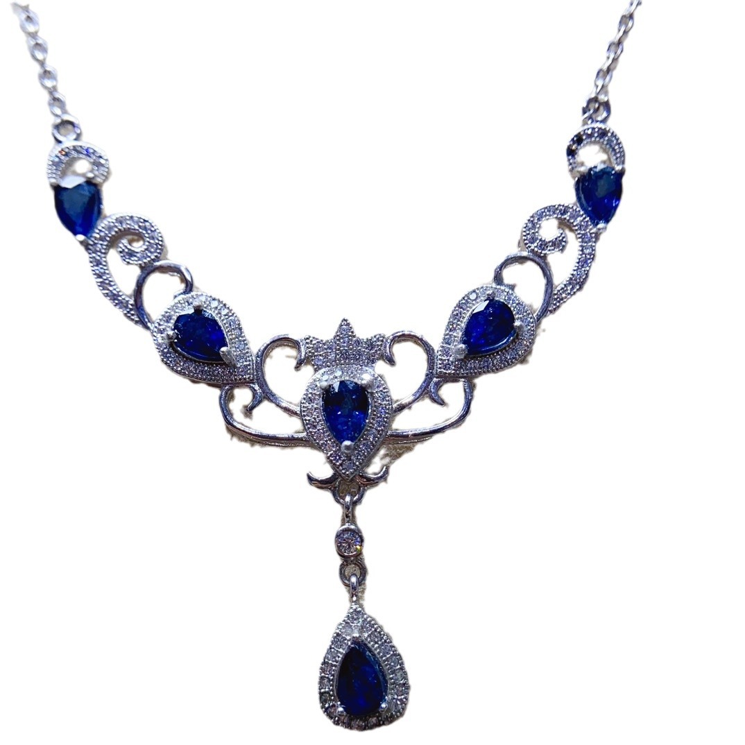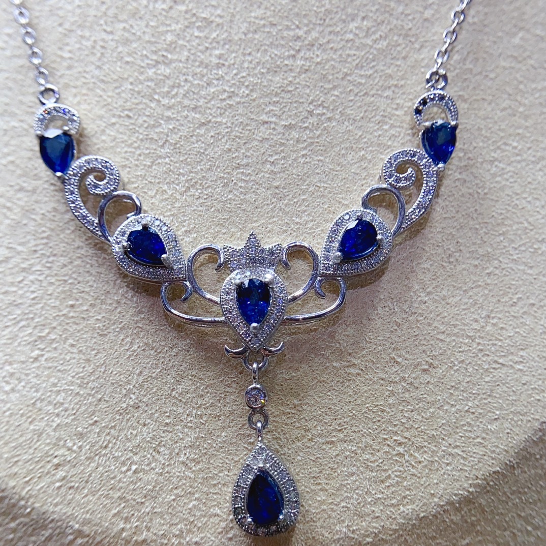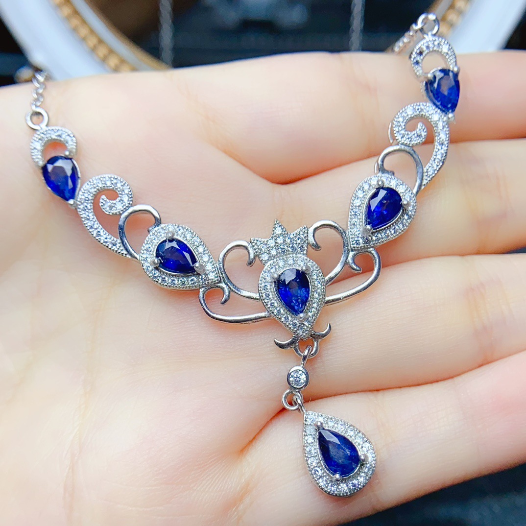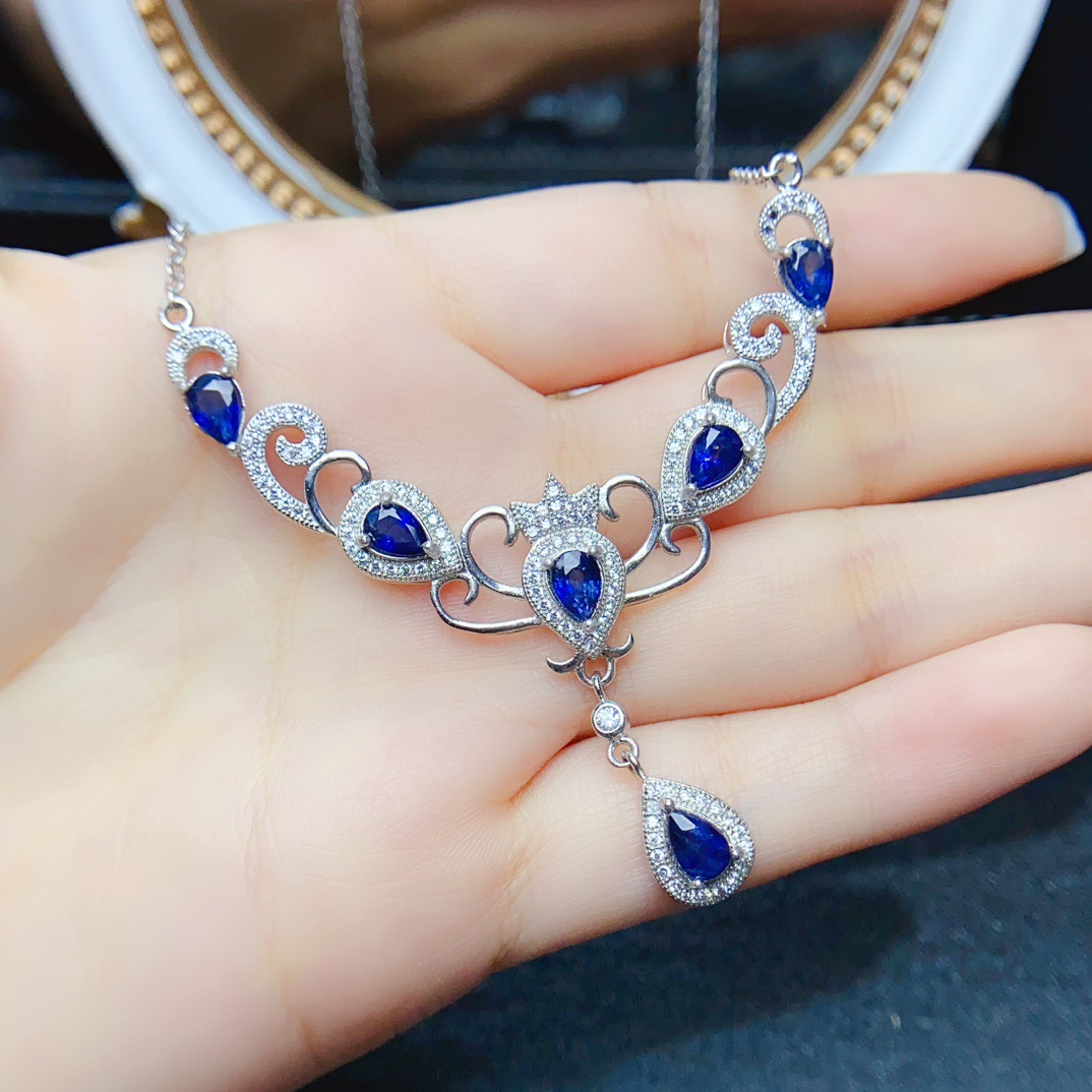 Ожерелье из натурального сапфира S925, инкрустированное серебром, основной камень 3*4