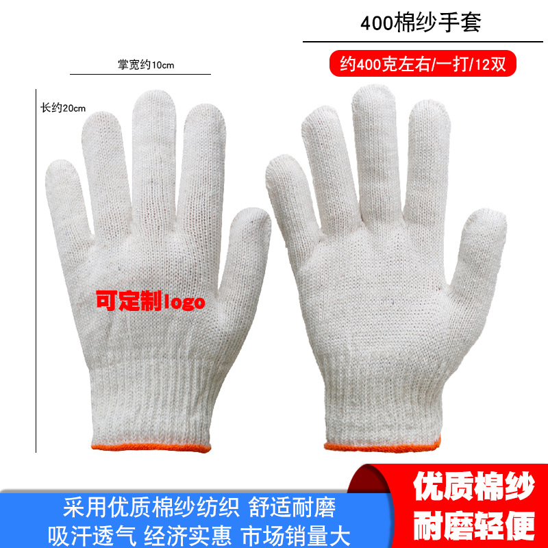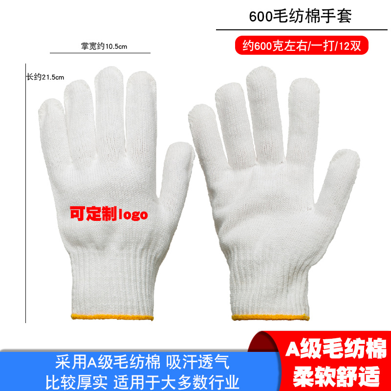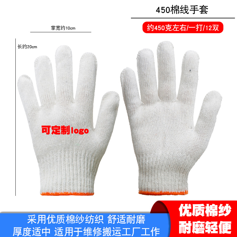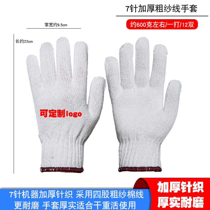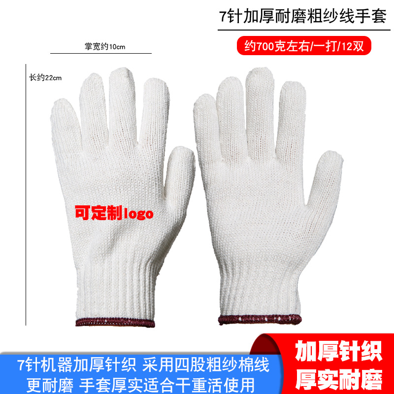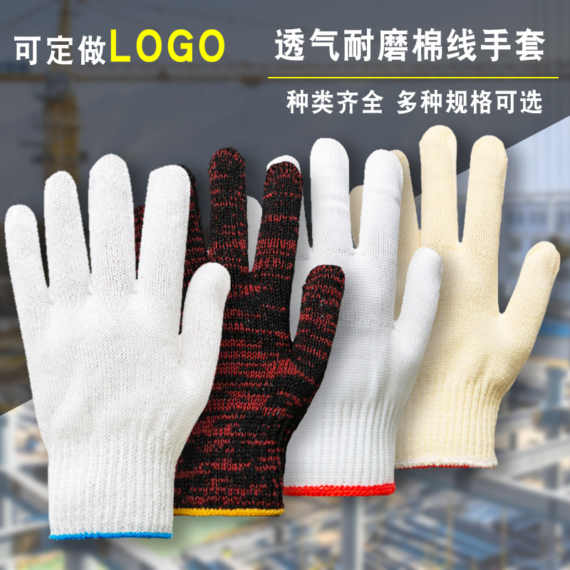 Охранные перчатки хлопчатобумажная нить оптовая дышащая, износостойкая, грязь и утолщение нейлон белая хлопчатобумажная пряжа строительная площадка для защиты комфорта