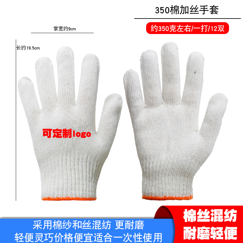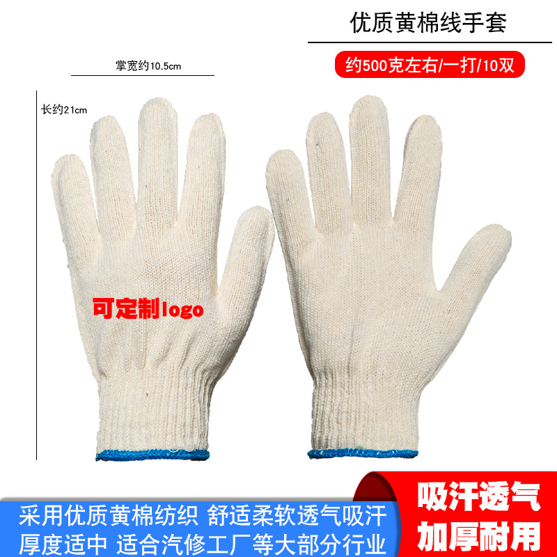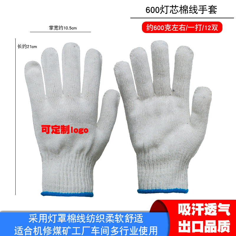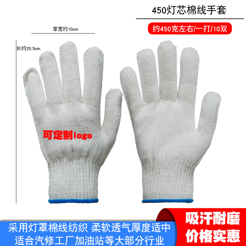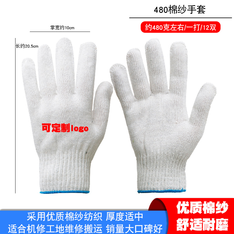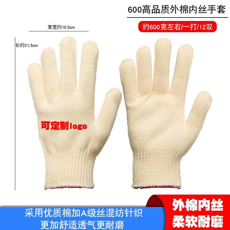Охранные перчатки хлопчатобумажная нить оптовая дышащая, износостойкая, грязь и утолщение нейлон белая хлопчатобумажная пряжа строительная площадка для защиты комфорта
