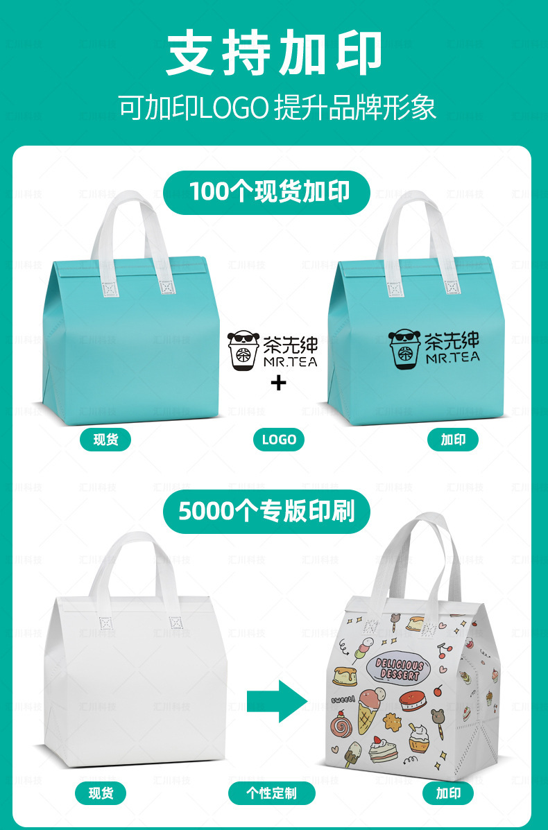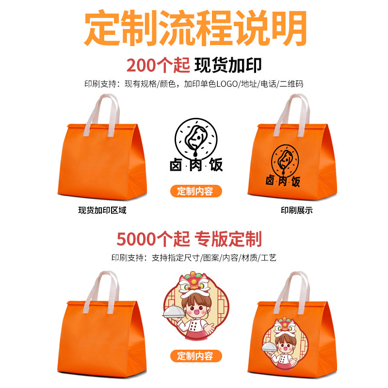 Упаковочные пакеты для еды на вынос, одноразовые изоляционные пакеты для доставки, нетканые сумки для молочного чая и барбекю, оптовая продажа и индивидуальный пошив