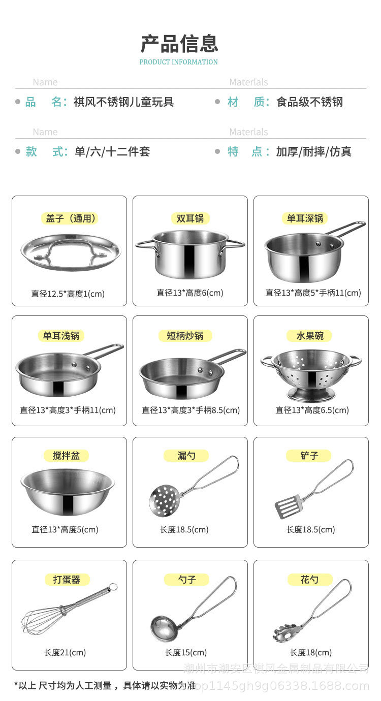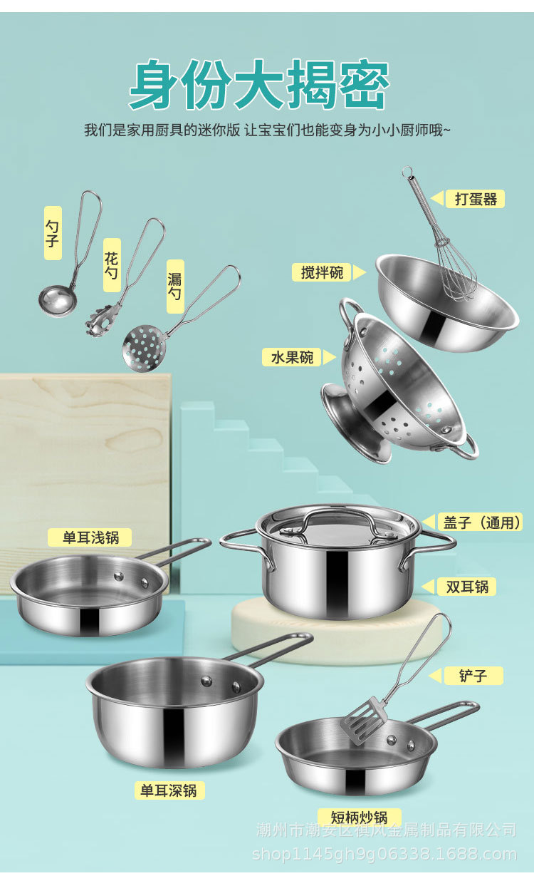 Детские игрушки из нержавеющей стали, чтобы сделать дом на кухне 12 комплектов больших кухонных игрушек