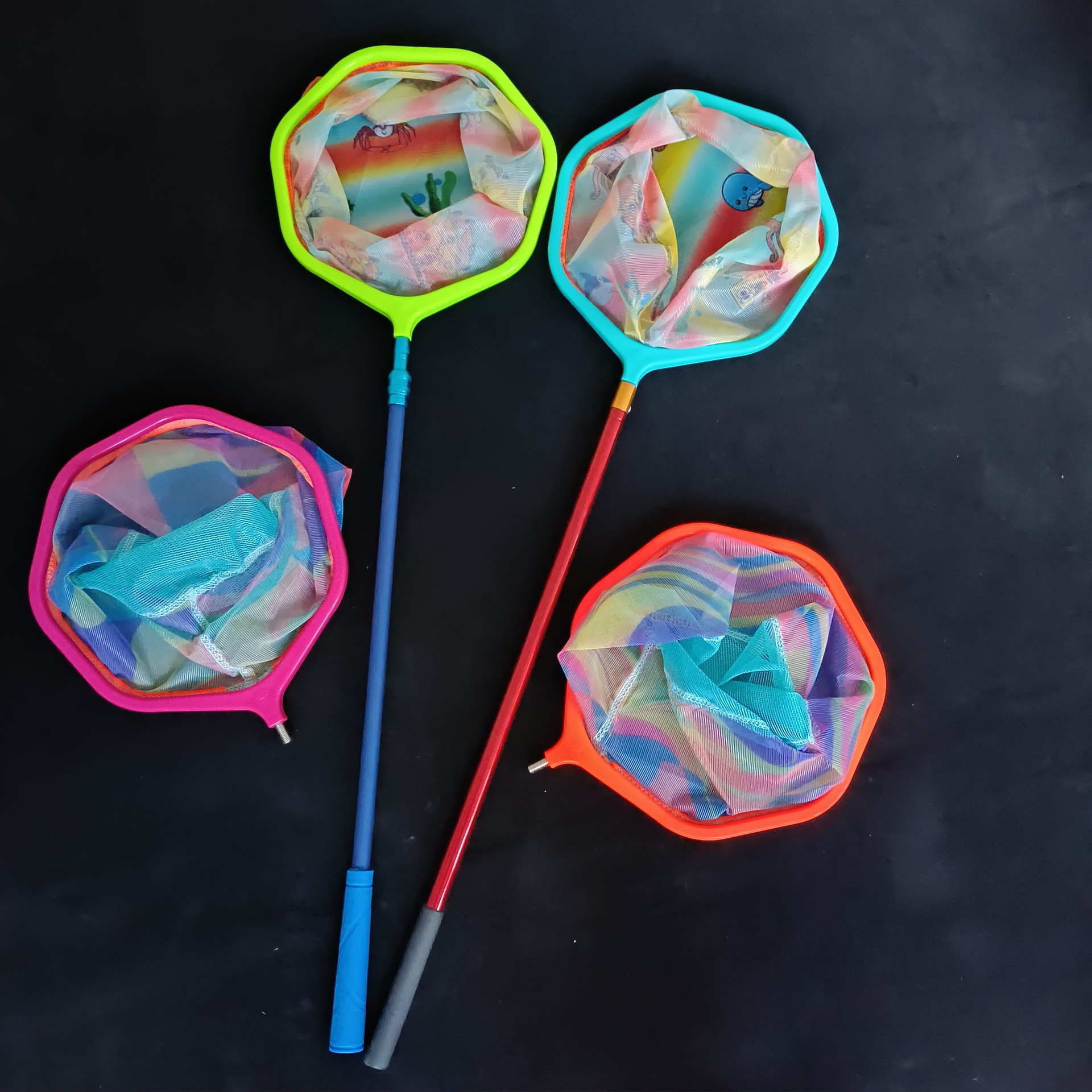 Сетчатый стержень (цвет случайный); Синяя отдельная сетчатая головка; Желтая сетчатая головка; Красная сетчатая головка; Фиолетовый отдельный сетчатый заголовок; 5 сект из нержавеющей стали Телескопический стержень (1,5 м); 2 секции из нержавеющей стали телескопический стержень (98cm)