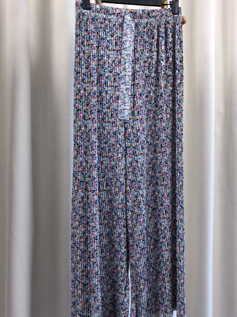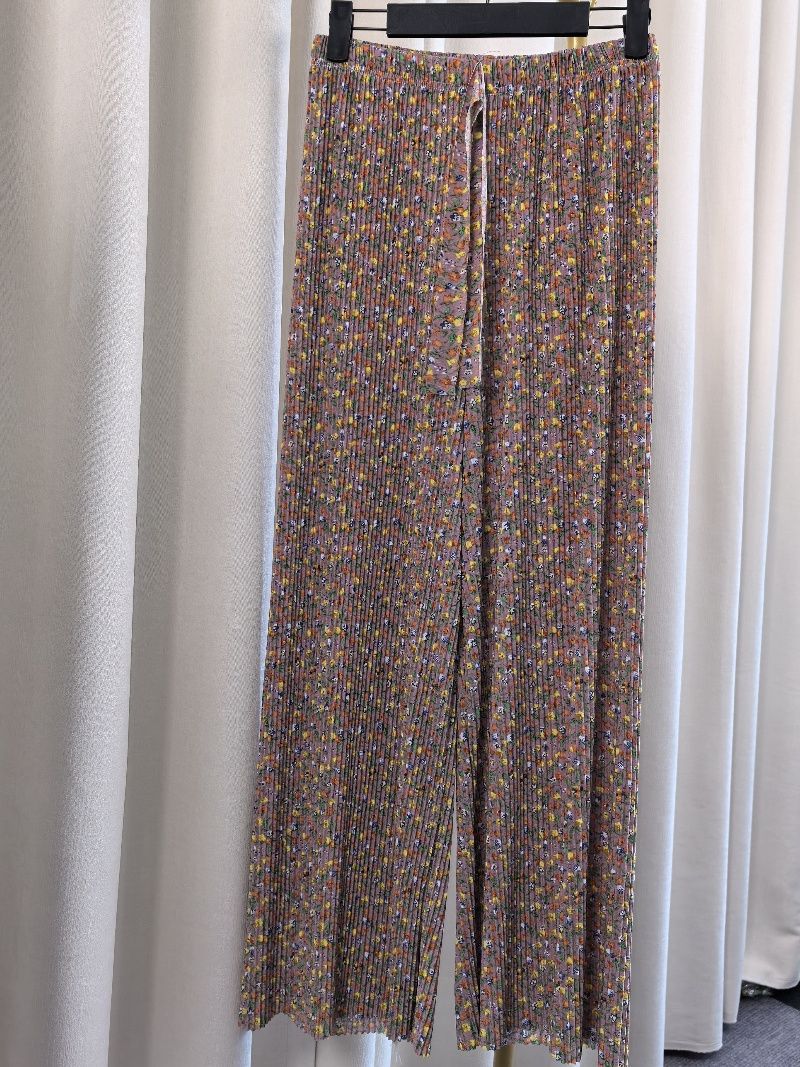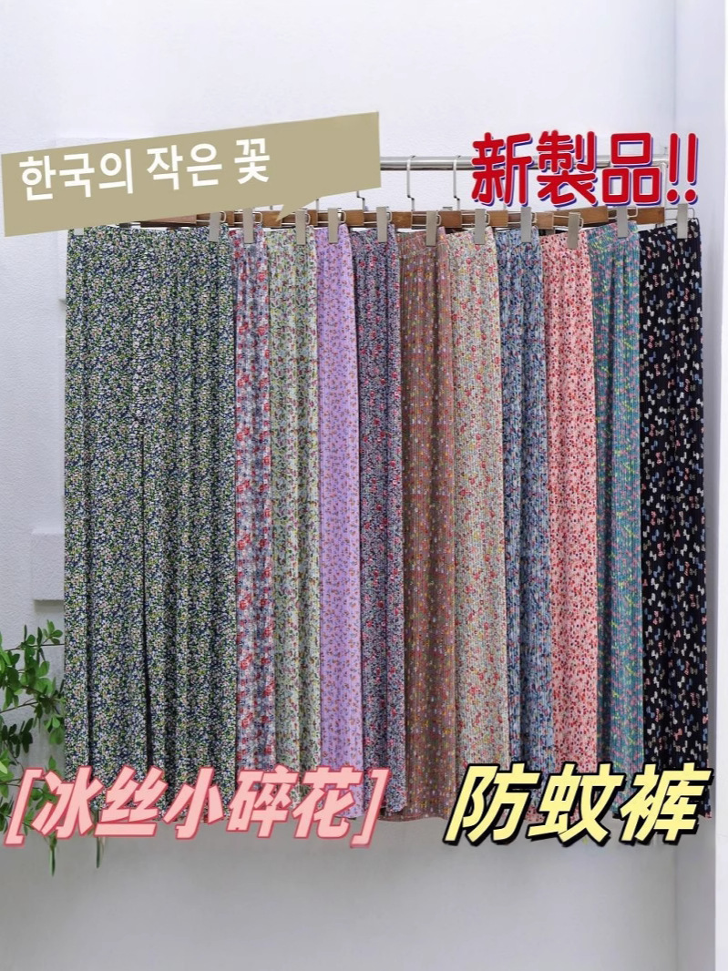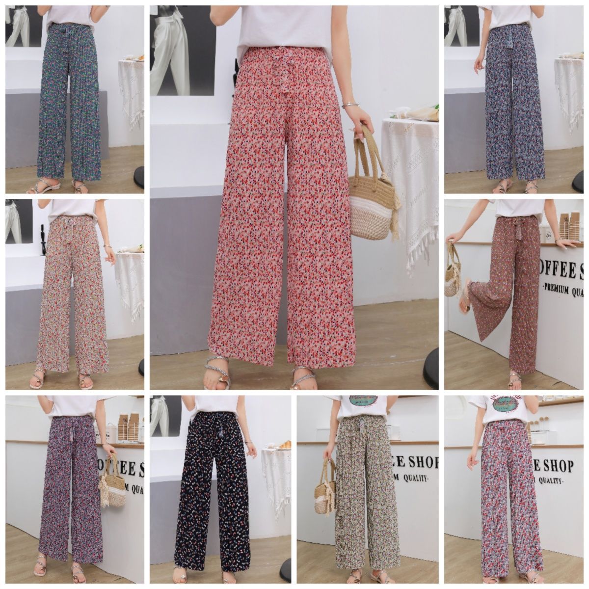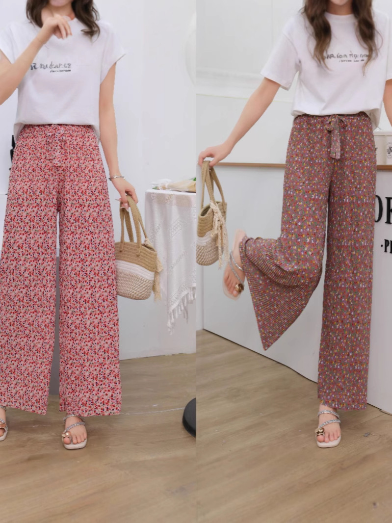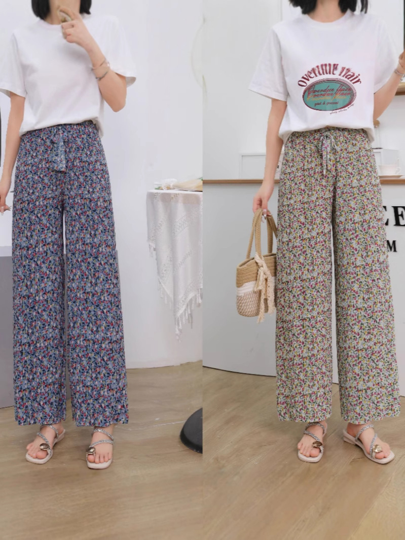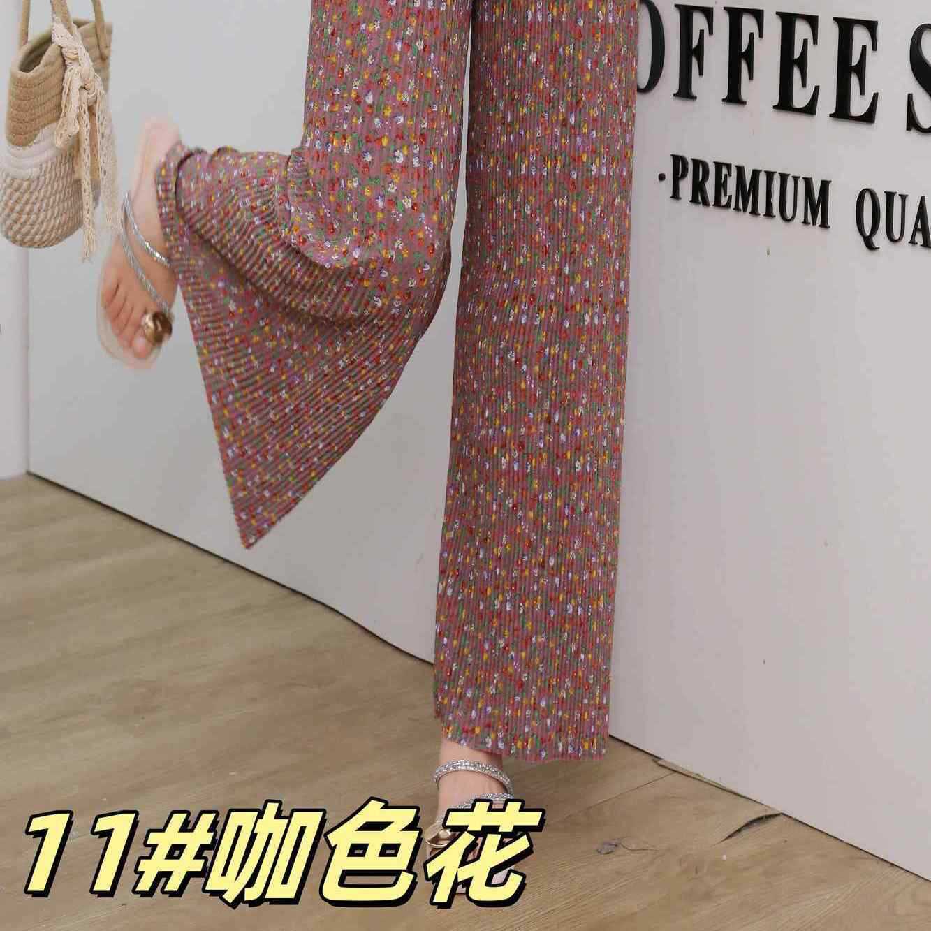 Корейские плиссированные широкие брюки из ледяного шелка с цветочным принтом, повседневные солнцезащитные пляжные крутые брюки, летние домашние прогулочные повседневные брюки