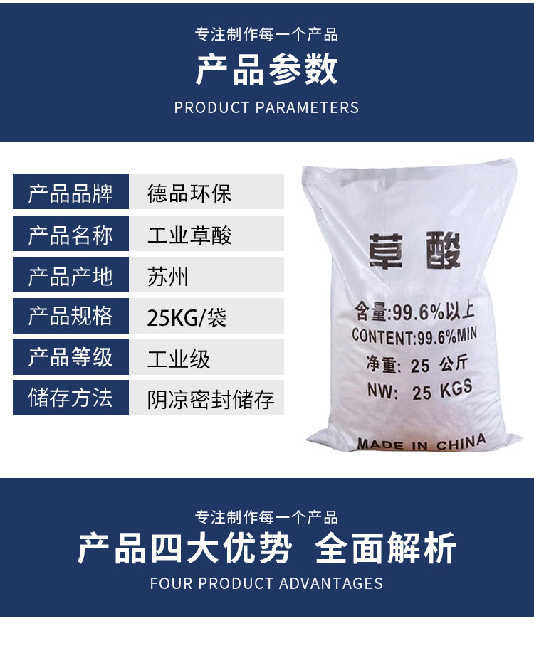 Оптовая оптовая продажа промышленных химических реагентов щавелевой кислоты для очистки сточных вод унитаз для удаления накипи ржавчины 99.6 Промышленная щавелевая кислота