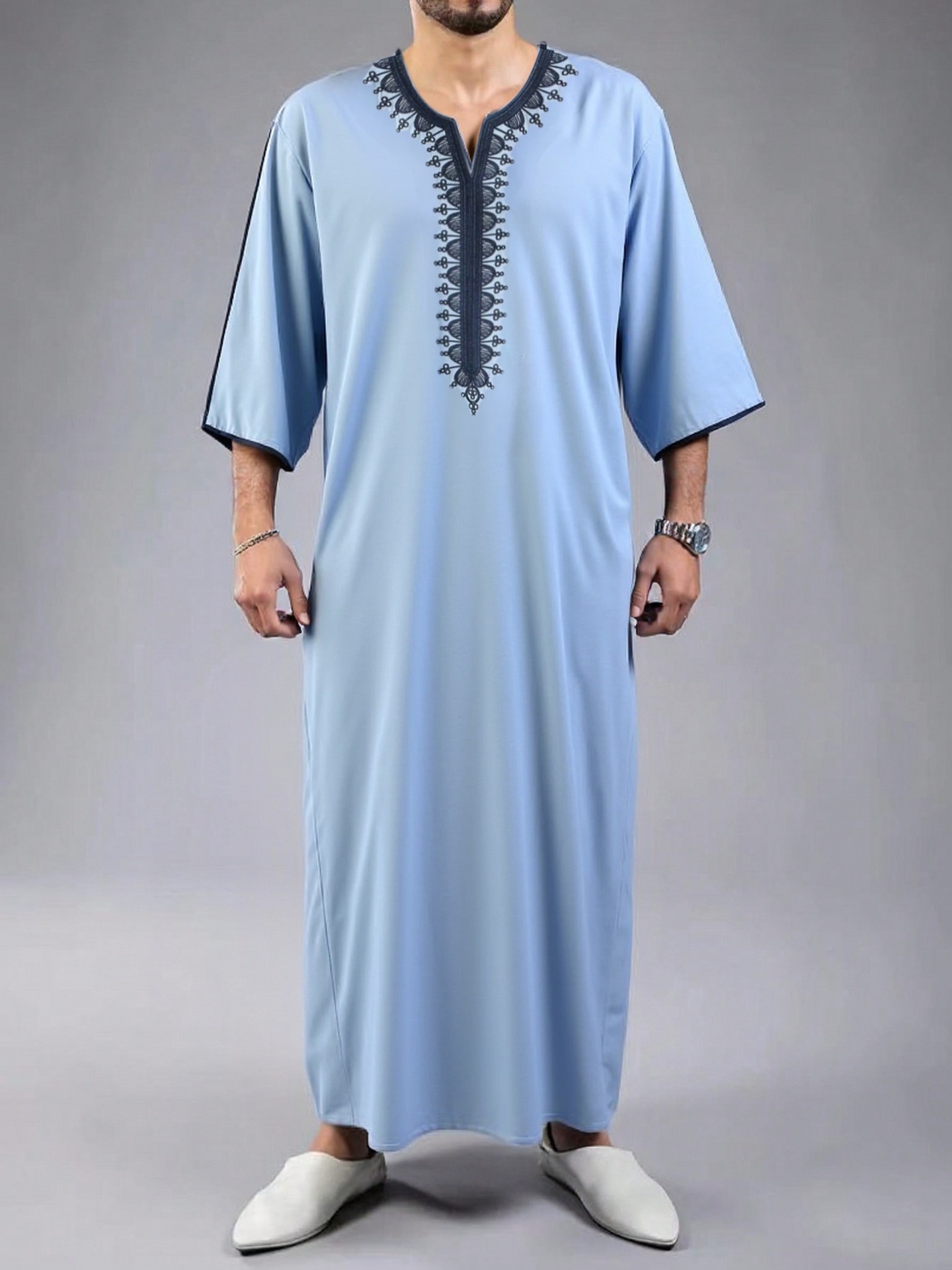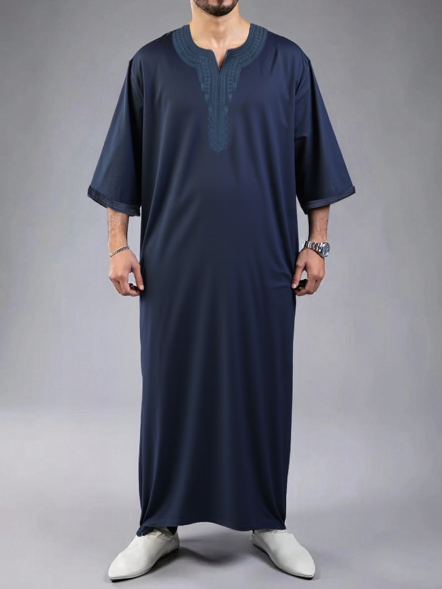 2024 Новый ближневосточный арабский халат средний длинный рукав вышитый красный конверт Мужской мусульманский халат AliExpress