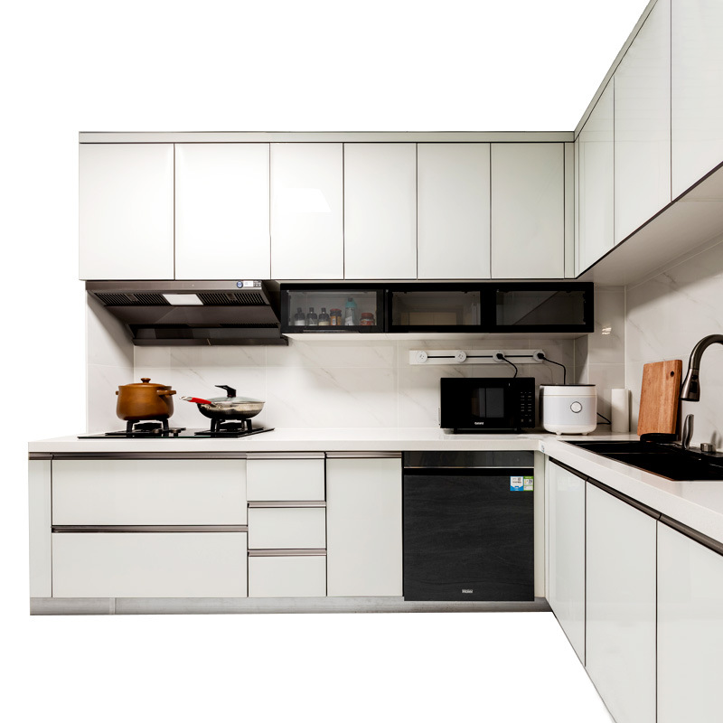 Минималистичный белый алюминиевый сплав шкаф в целом кухня напоочный шкаф водонепроницаемый и маслостойкая плита подвесной шкаф весь алюминиевый мебельная фабрика