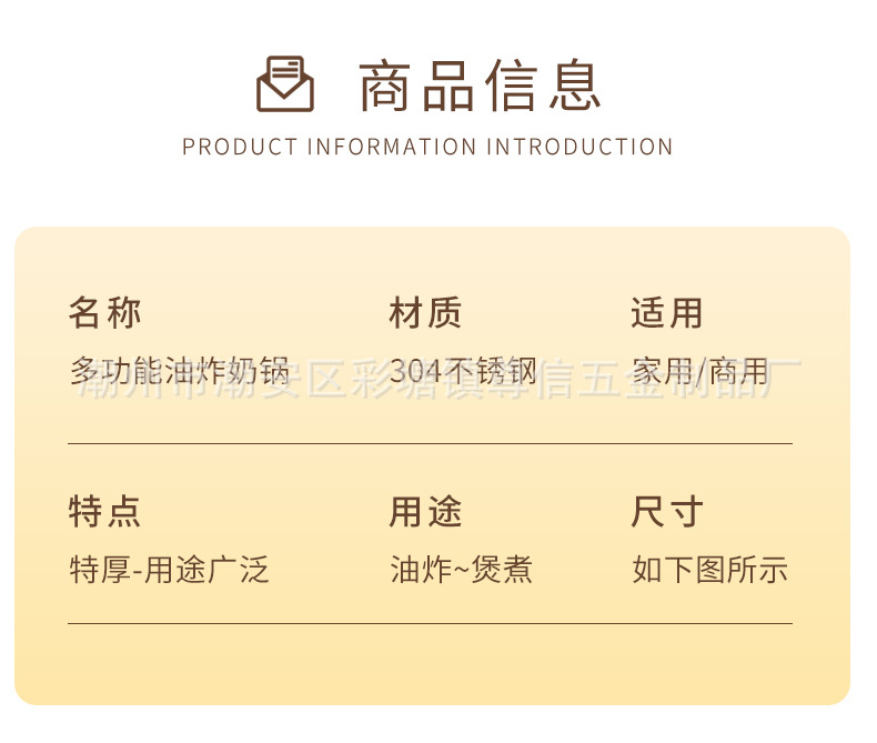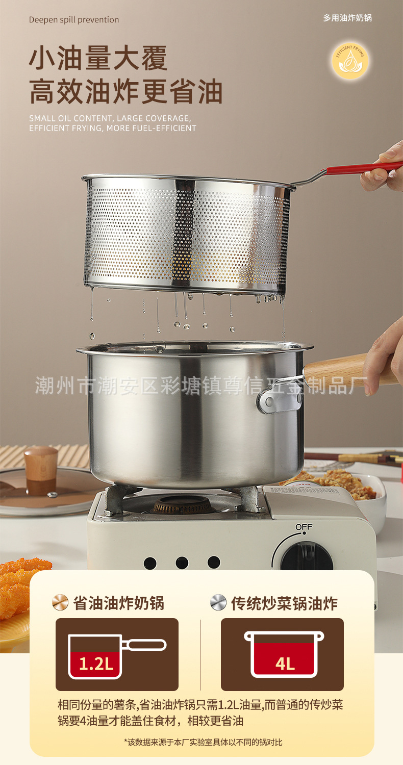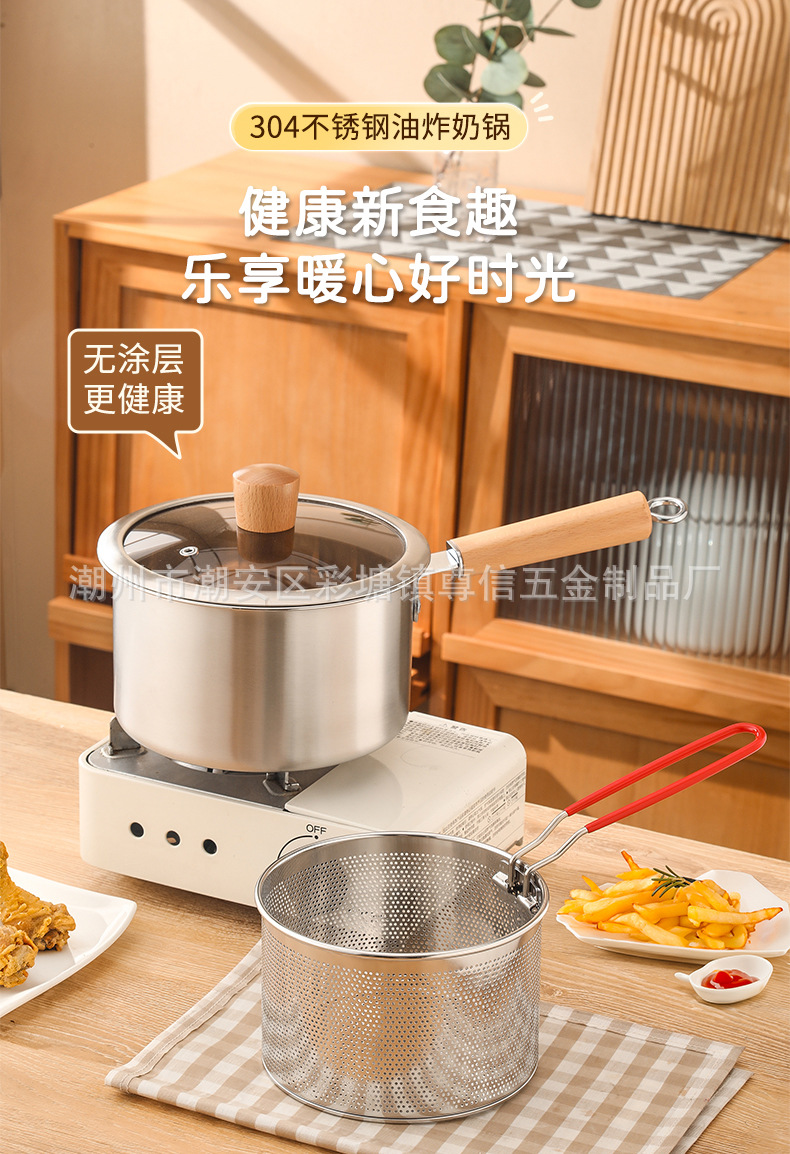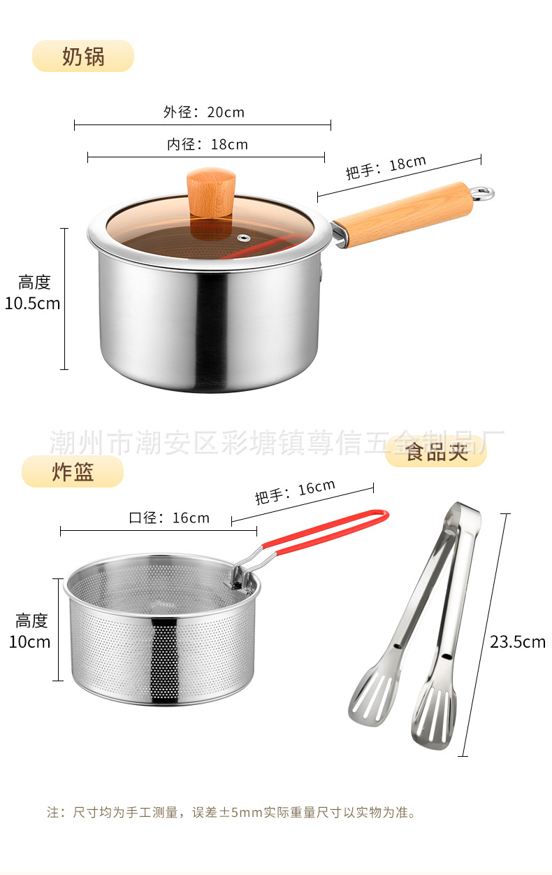 Одинарный горшок 18 см (SUS304); Кастрюля для молока 18 см + крышка (SUS304); 18 см одиночная кастрюля + корзина для жарки (нержавеющая сталь SUS304); Кастрюля для молока 18 см + крышка + корзина для жарки (SUS304); Молочник 18 см + крышка + корзина для жарки + зажим (нержавеющая сталь SUS304); Одинарный горшок 18 см (SUS201)