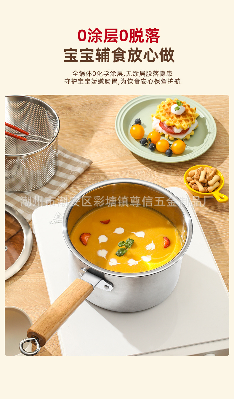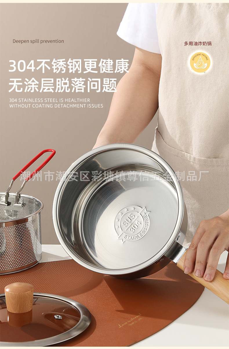Кастрюля для молока из нержавеющей стали 304, универсальная кастрюля для жарки, небольшая кастрюля для детского питания, многофункциональная сковорода для приготовления на пару и жарки, экономящая масло