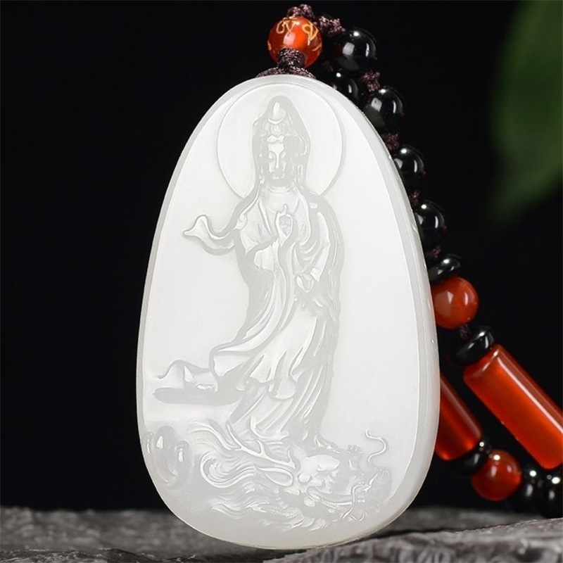 Завод оптовая продажа афганского нефрита синего белого нефрита Королевский дракон станции Гуаньинь подвеска светлая вода бодхисаттва колье для мужчин и женщин