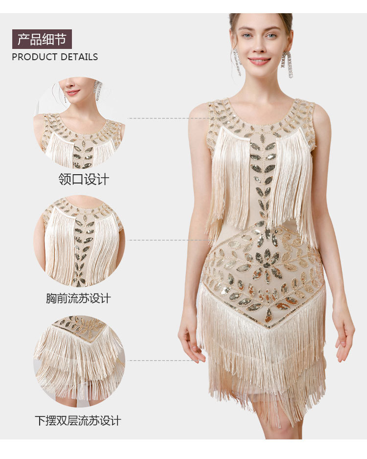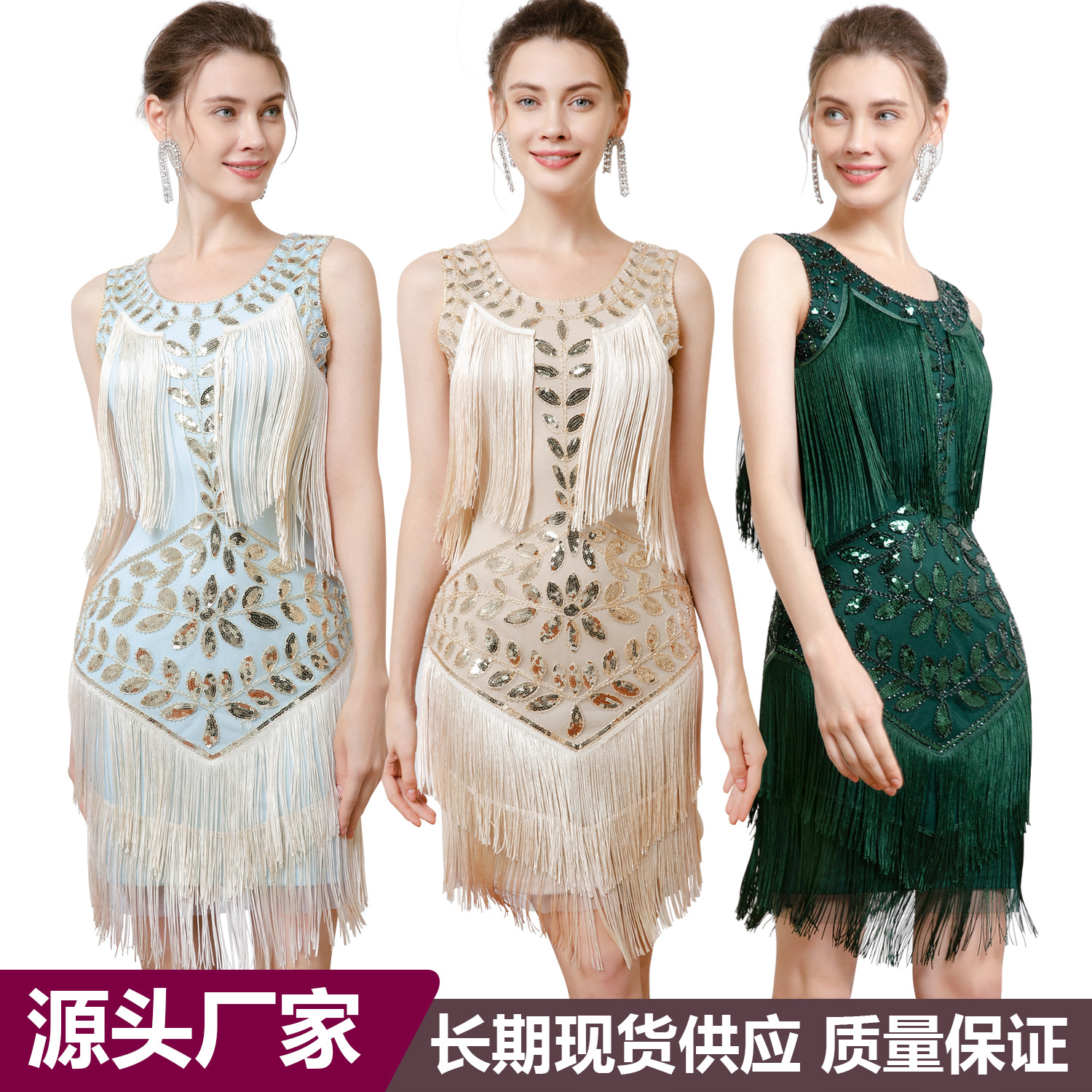 Трансграничные 1920 ретро Гэтсби выпускное платье с блестками танцевальное платье жилет с круглым вырезом