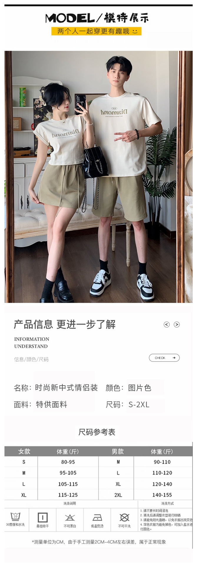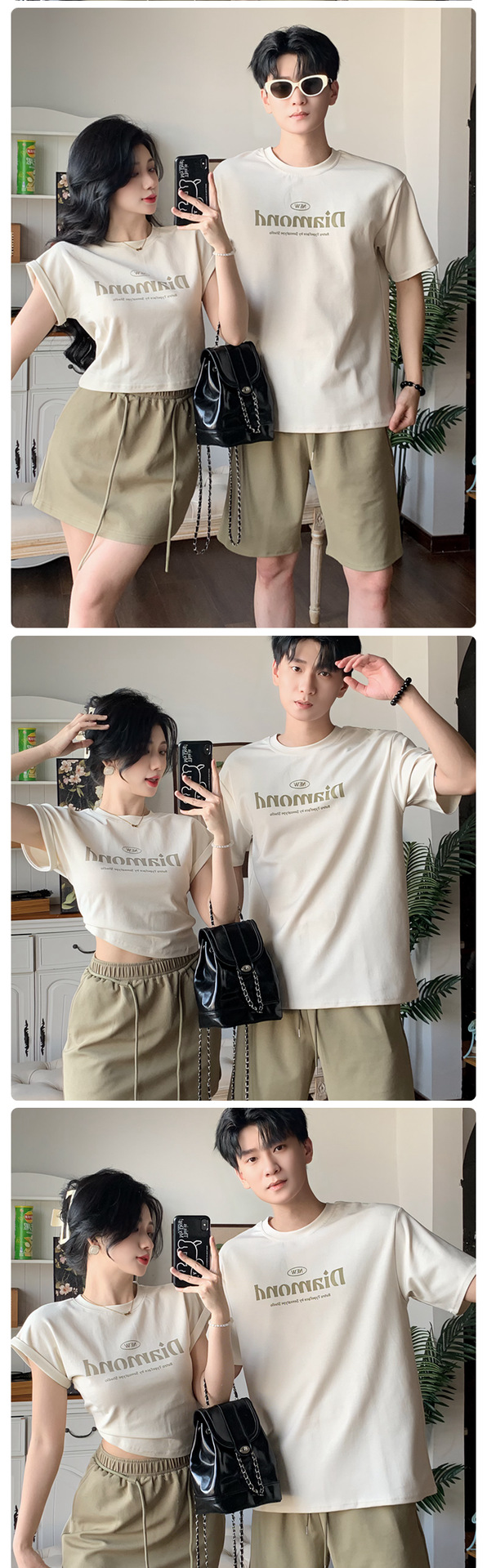 2024 летняя новая пара одежда дикая футболка с коротким рукавом буквенно-буквенные футболки женская летняя пара набор из двух частей