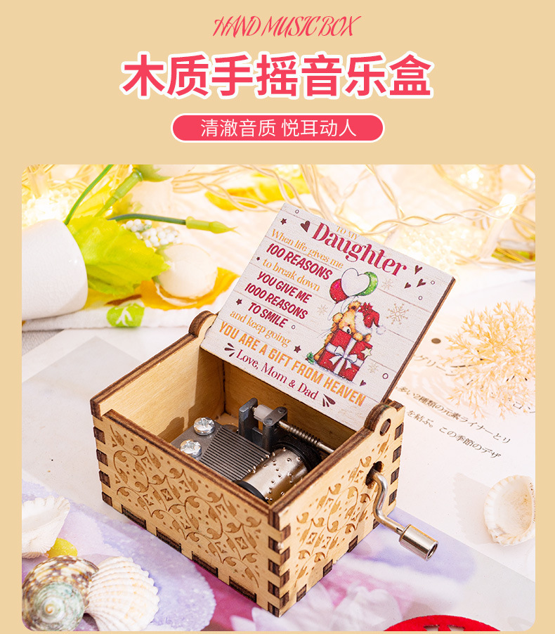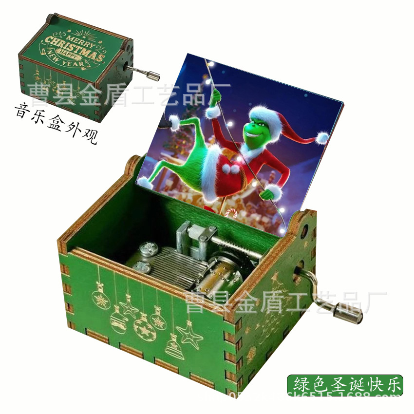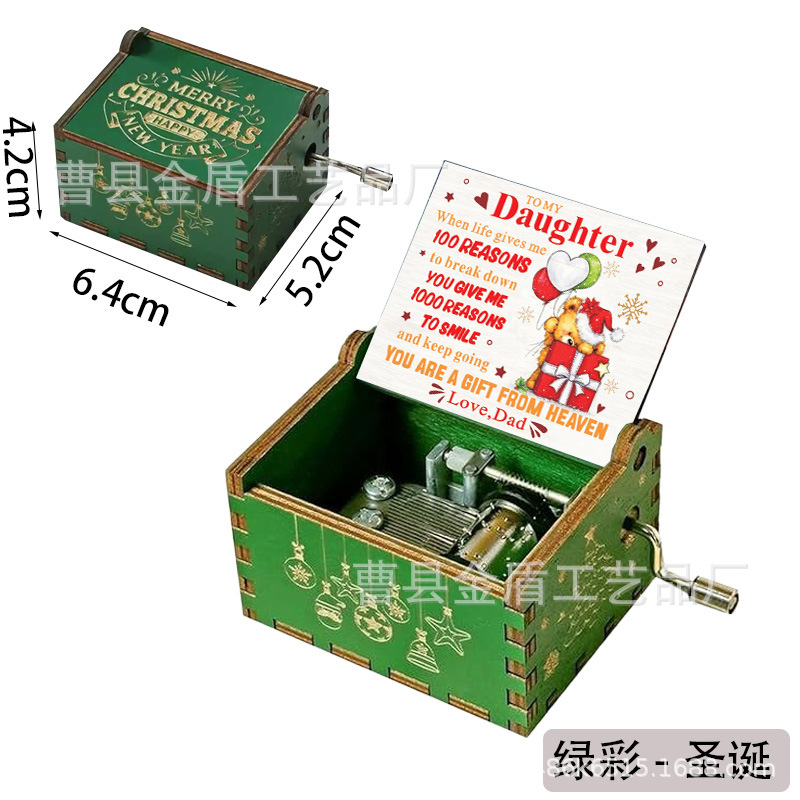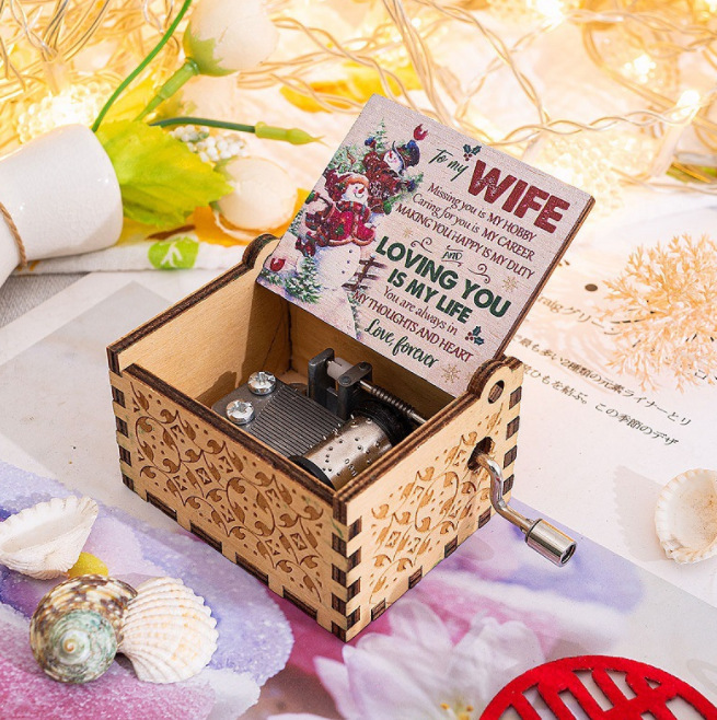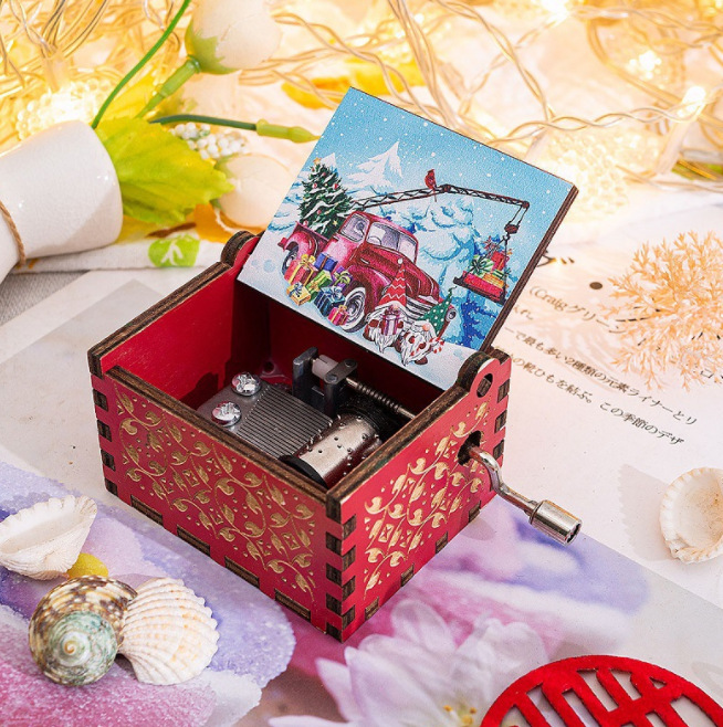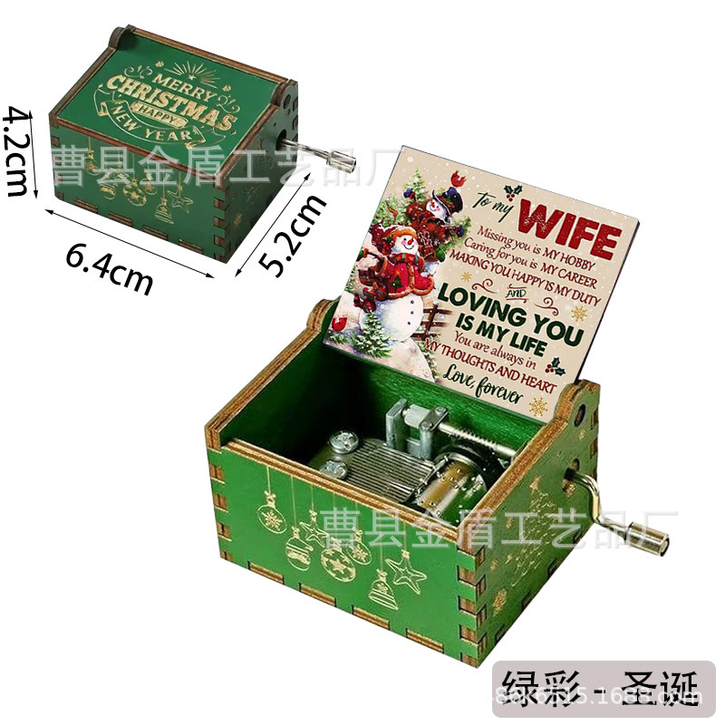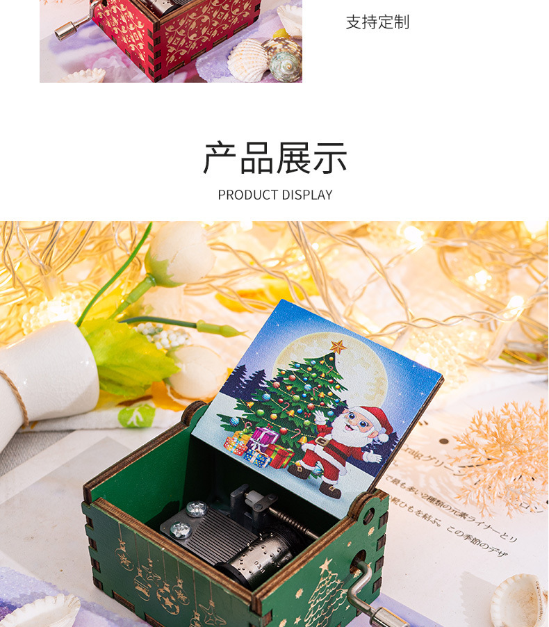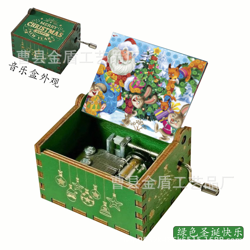 Рождественская деревянная музыкальная шкатулка с ручным приводом, винтажной гравировкой и УФ-печатью, оптовая продажа рождественских музыкальных шкатулок с заводным механизмом