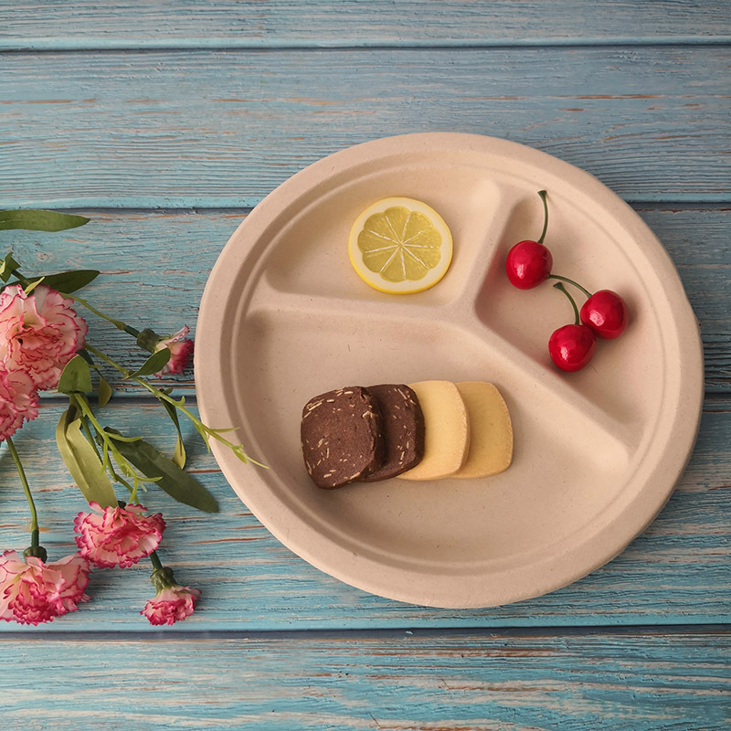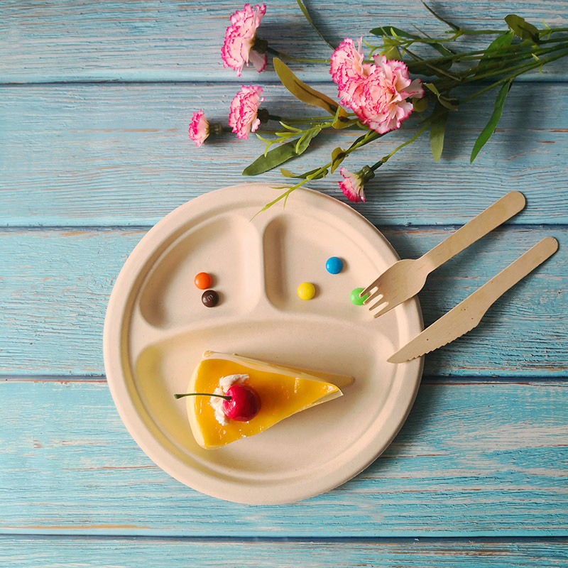 Одноразовые тарелки Пищевая 9-дюймовая детская тарелка Ресторан тарелки с тремя сетками тарелки оптом