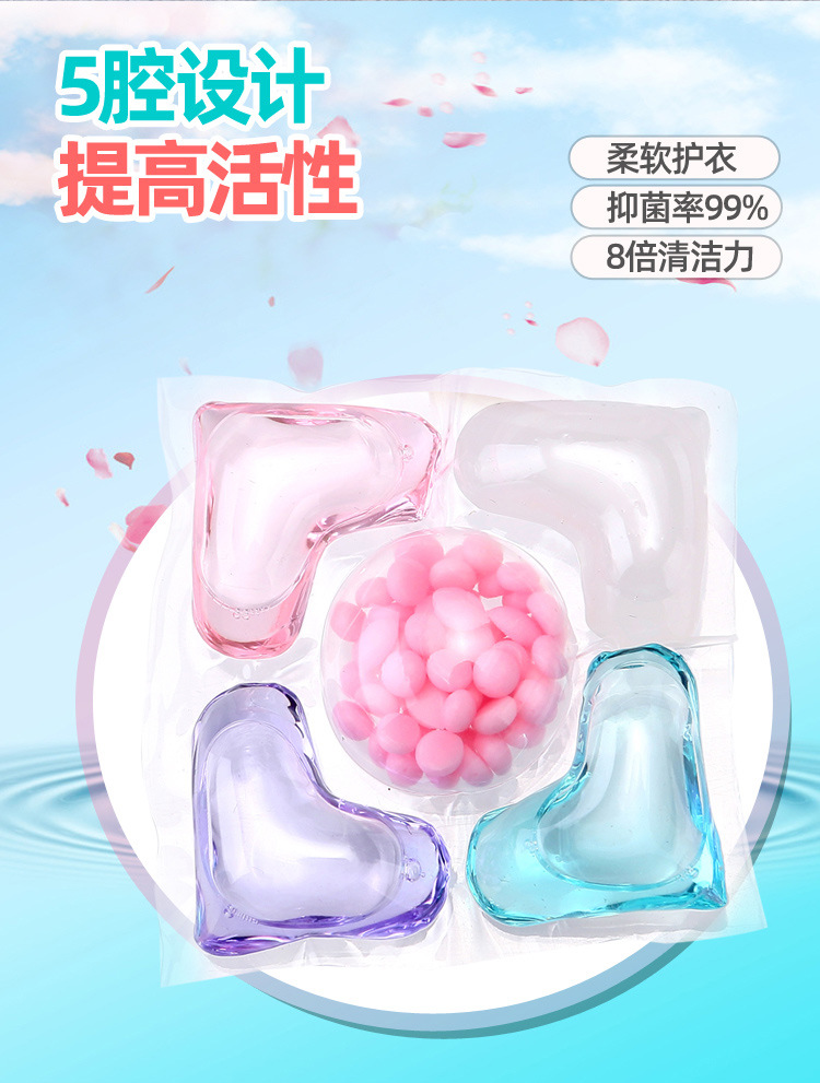 Пять в одном для стирки жемчуга оптом 8 г длительного хранения аромата и мягкости для стирки