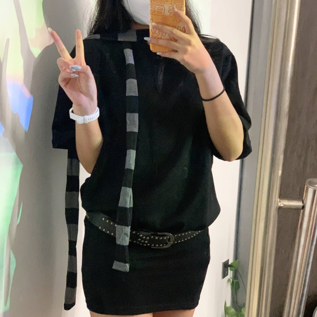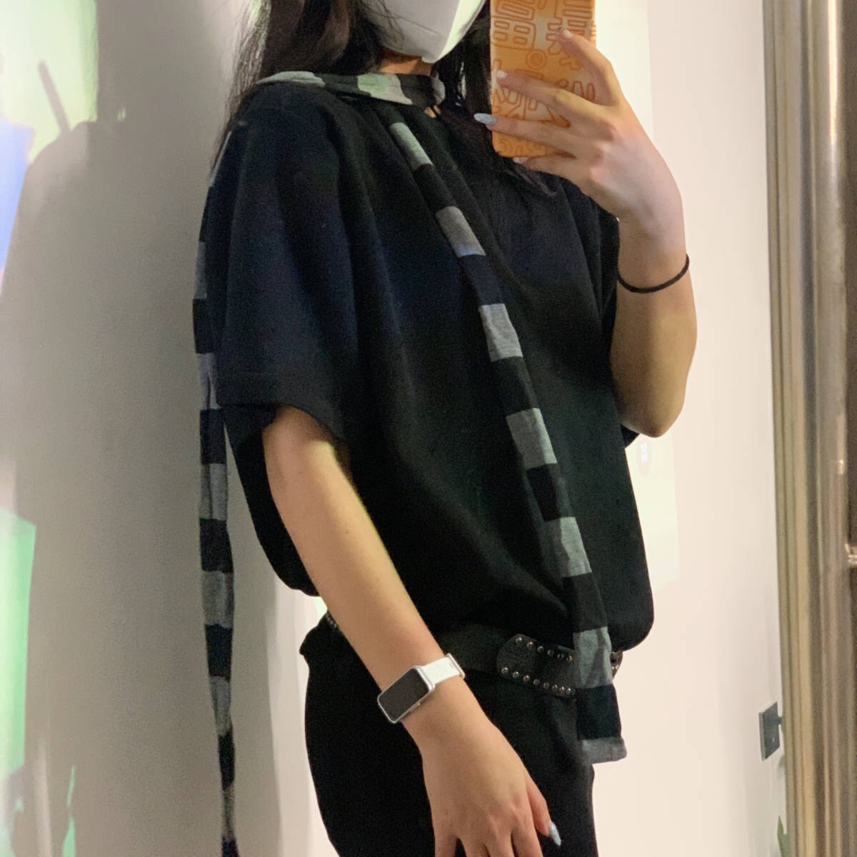 Панк Харадзюку субкультура двухмерный полосатый тонкий шарф хлопчатобумажная ткань вогнутая форма декоративного нагрудника для мужчин и женщин
