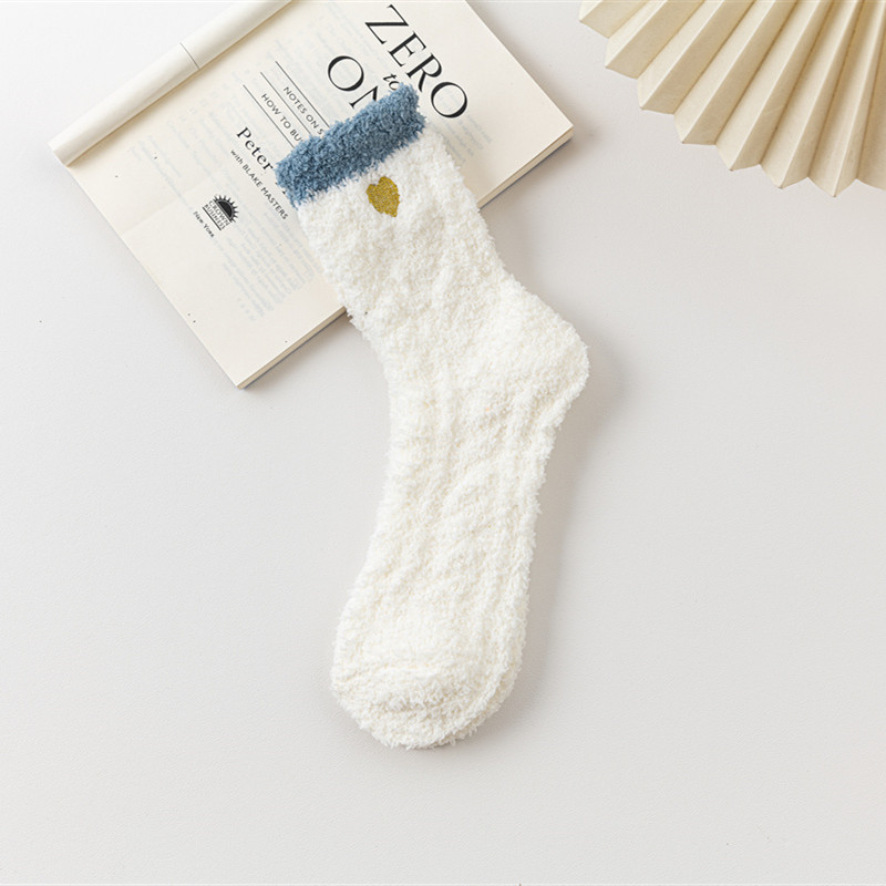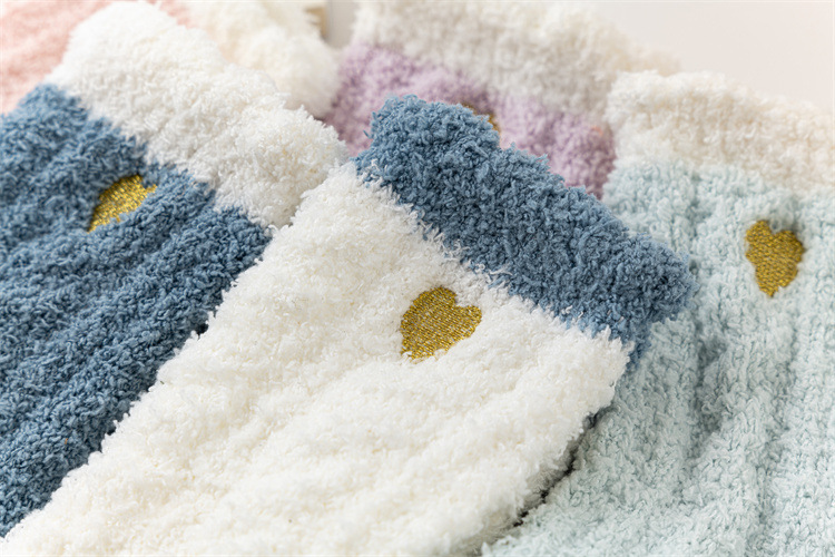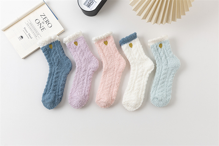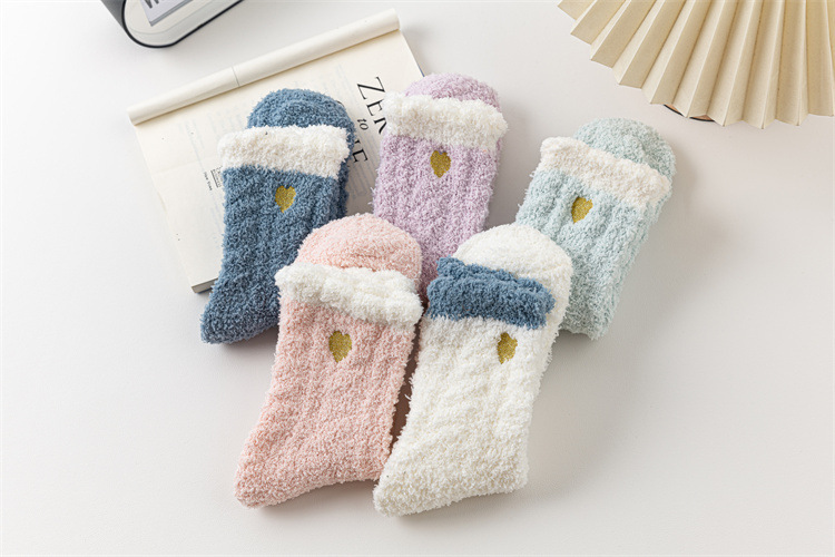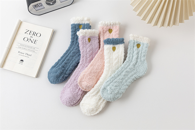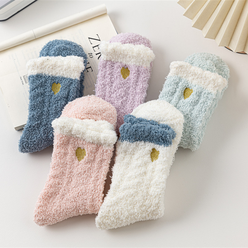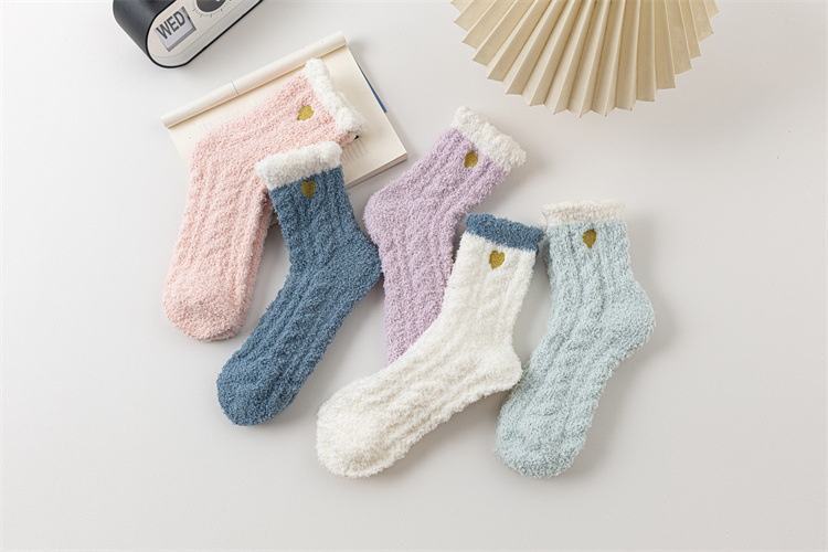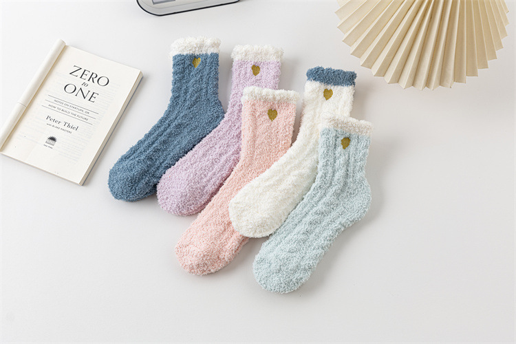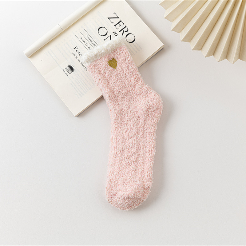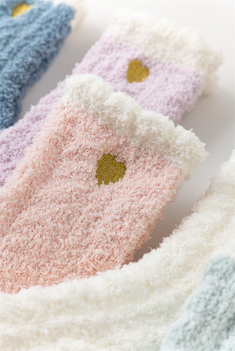 【产品名称】 刺绣爱心珊瑚绒女袜