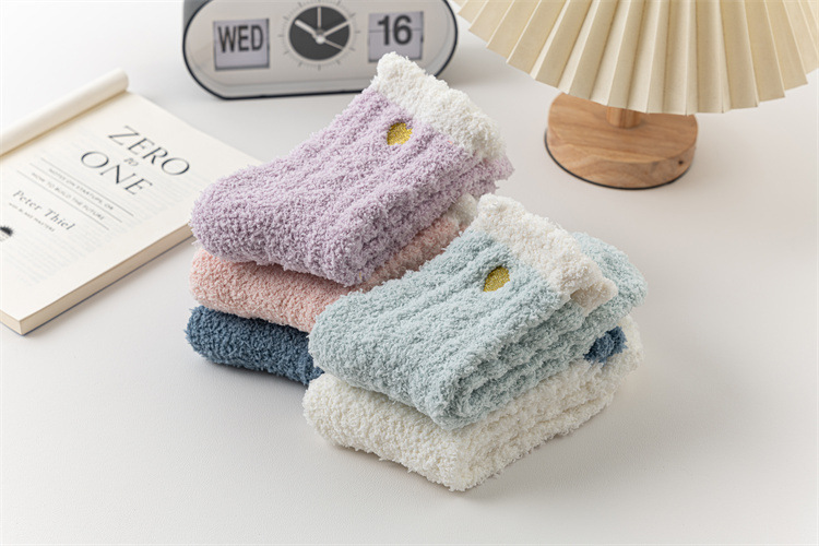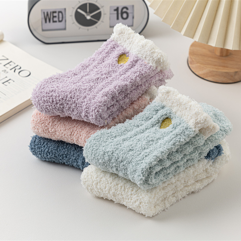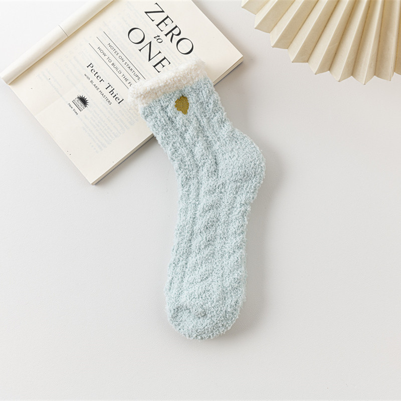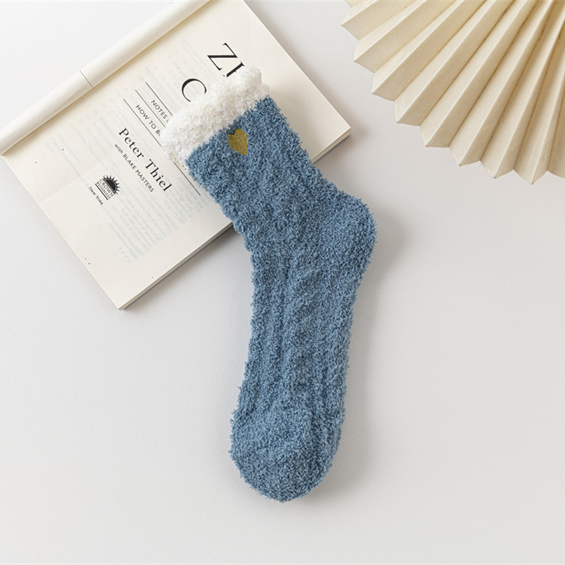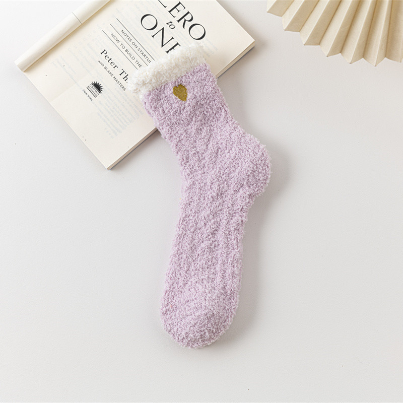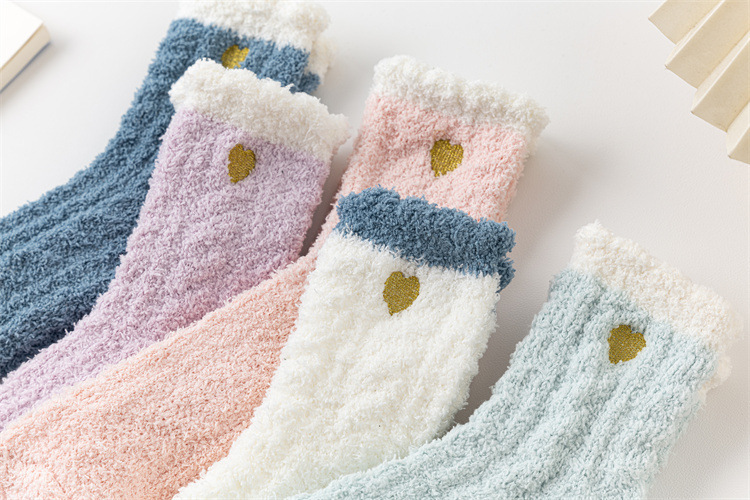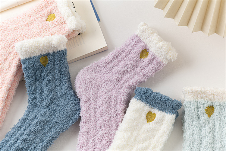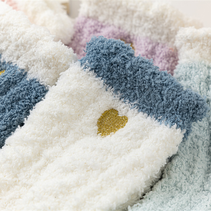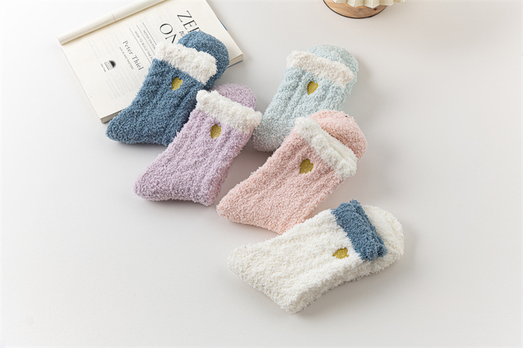 【产品名称】 刺绣爱心珊瑚绒女袜