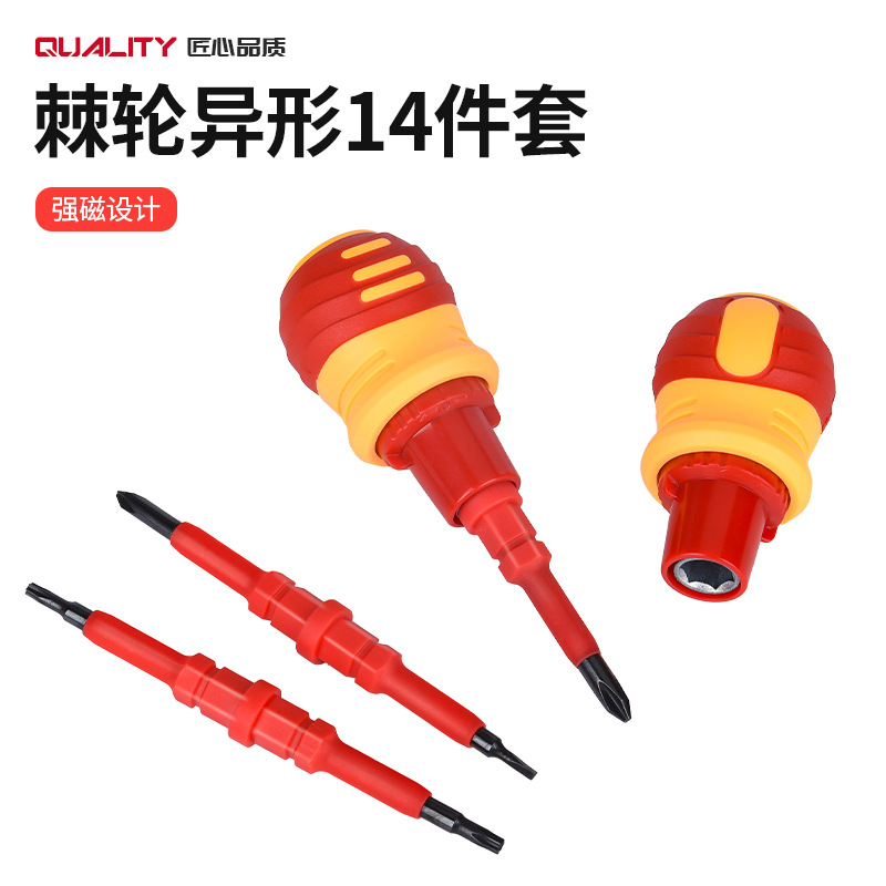 Новый изолированный набор электрических отверток 14-в-1, специальная отвертка для электрика, портативная отвертка с храповым механизмом
