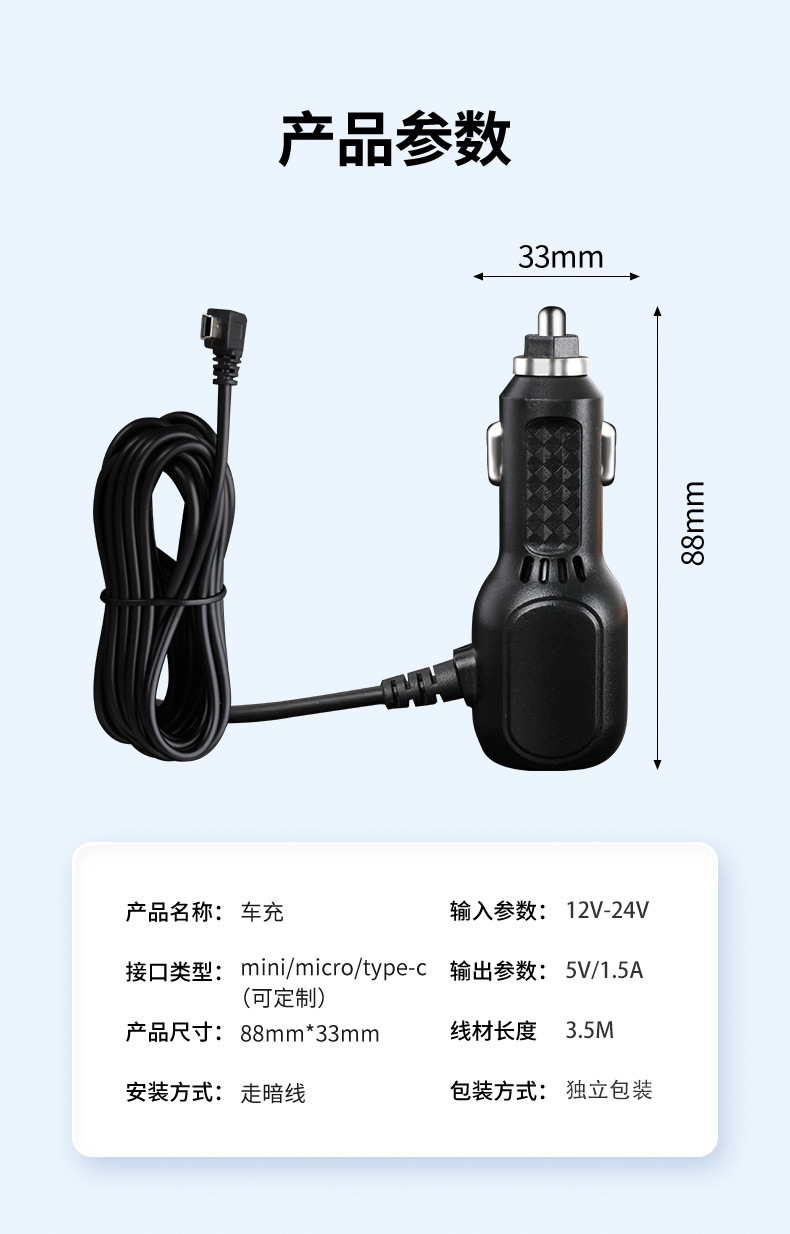 Автозарядный шнур питания 12-24V к 5V/1.5A тахограф прикуриватель шнур питания чистая медь материал оптовая продажа