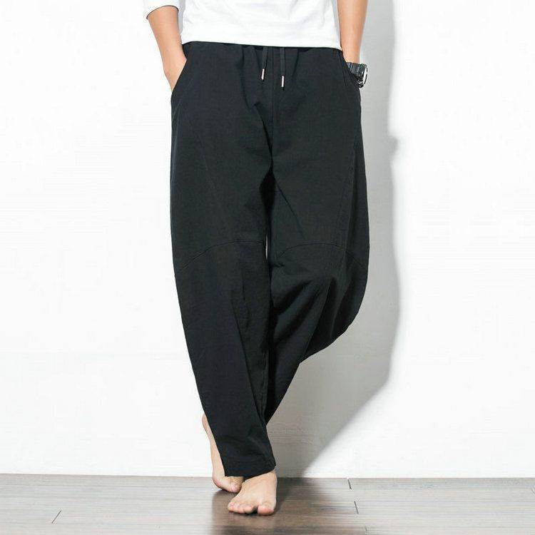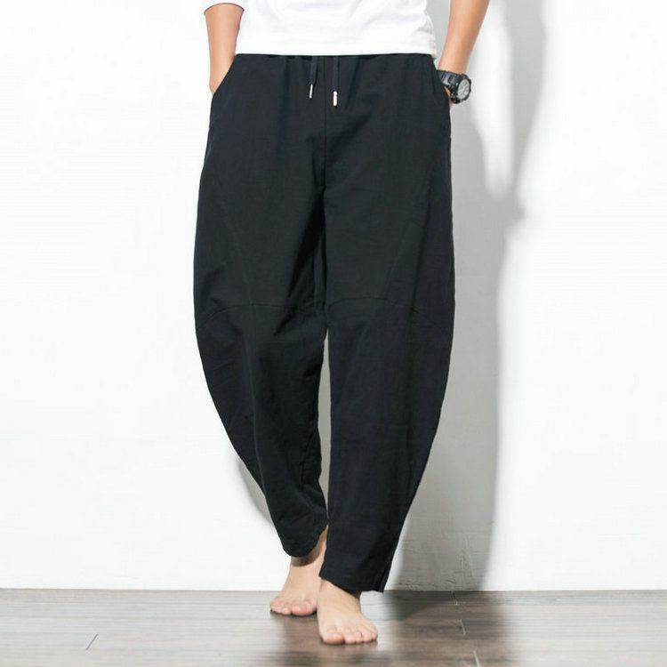 Хлопковые и льняные укороченные брюки Мужские летние брюки Тан прямые брюки в китайском стиле повседневные льняные дышащие широкие брюки