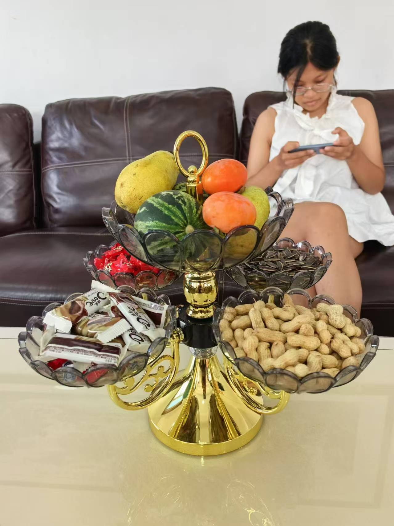 Европейская хрустальная многослойная вращающаяся фруктовая тарелка, современный домашний журнальный столик для гостиной, легкая роскошная тарелка для закусок, конфет, декоративный поднос