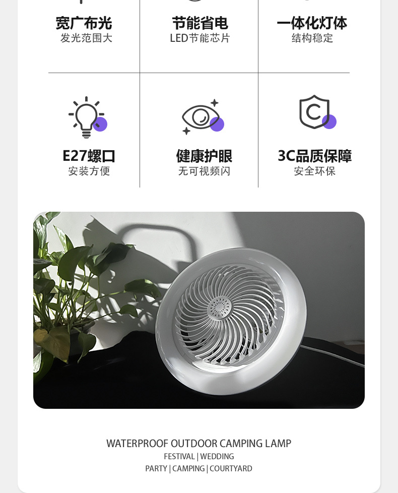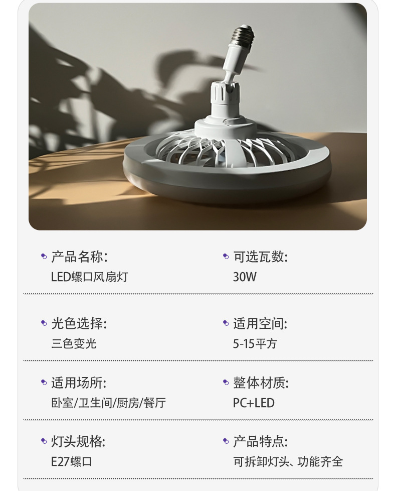 Новый светодиодный вентилятор с креплением E27, съемная лампа, энергосберегающий, с пультом дистанционного управления, плавная регулировка яркости, светильник для балкона.