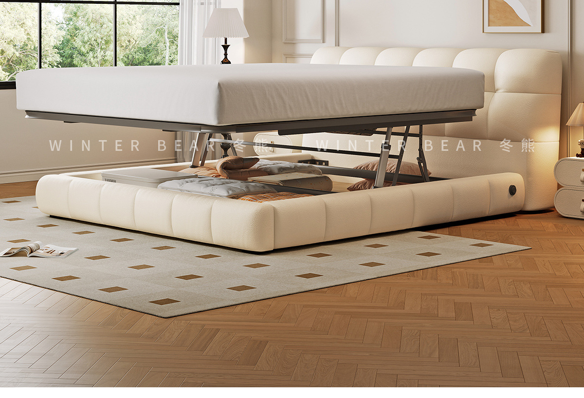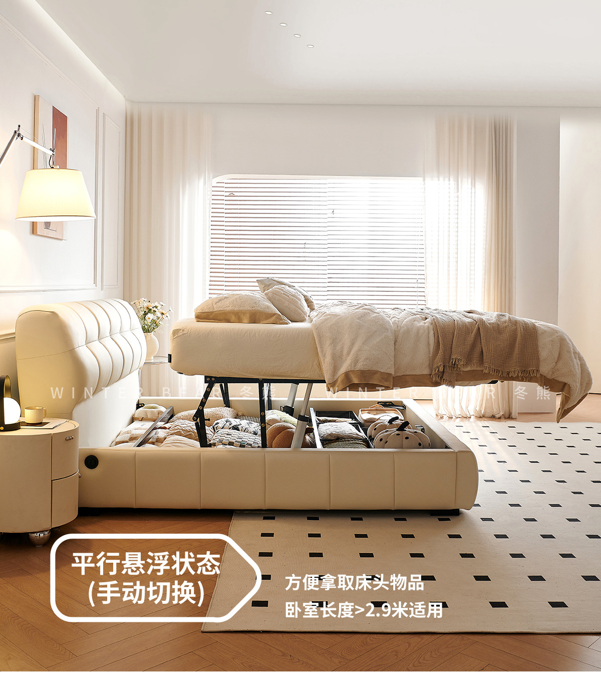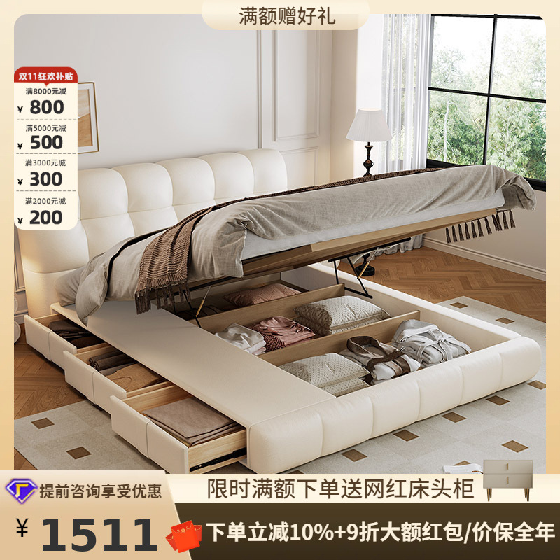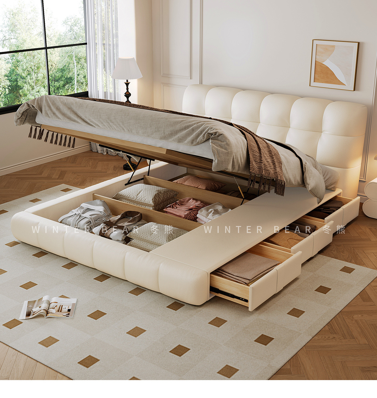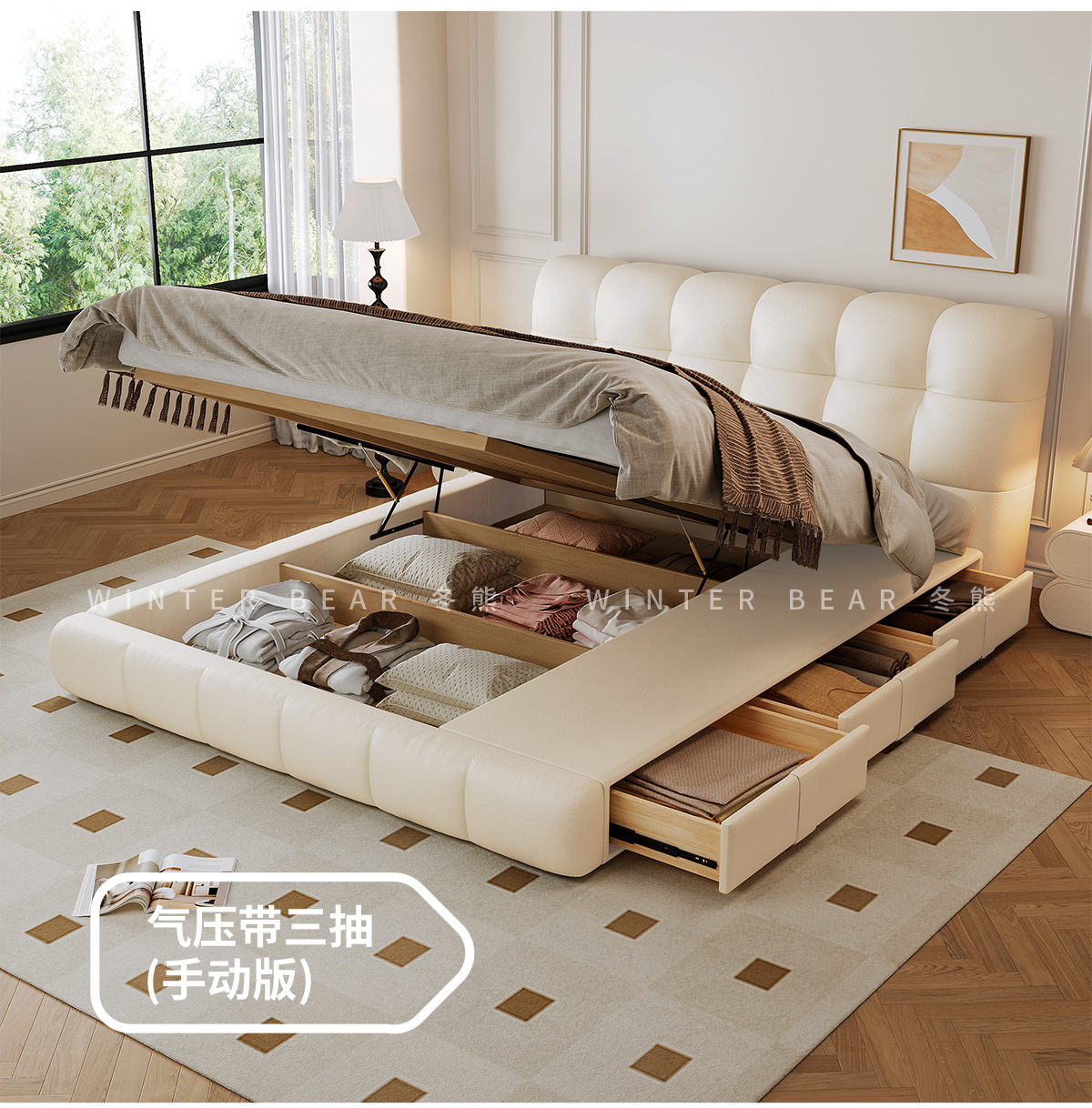 Многофункциональная кровать Tongyu с выдвижным ящиком Французская современная минималистская легкая кожаная кровать