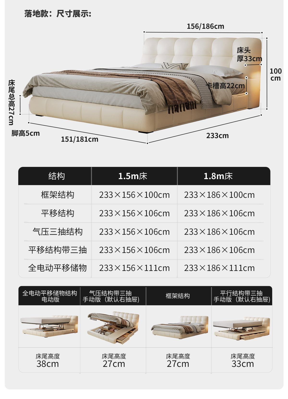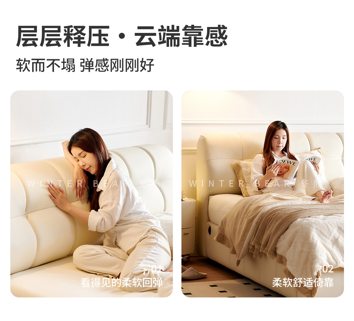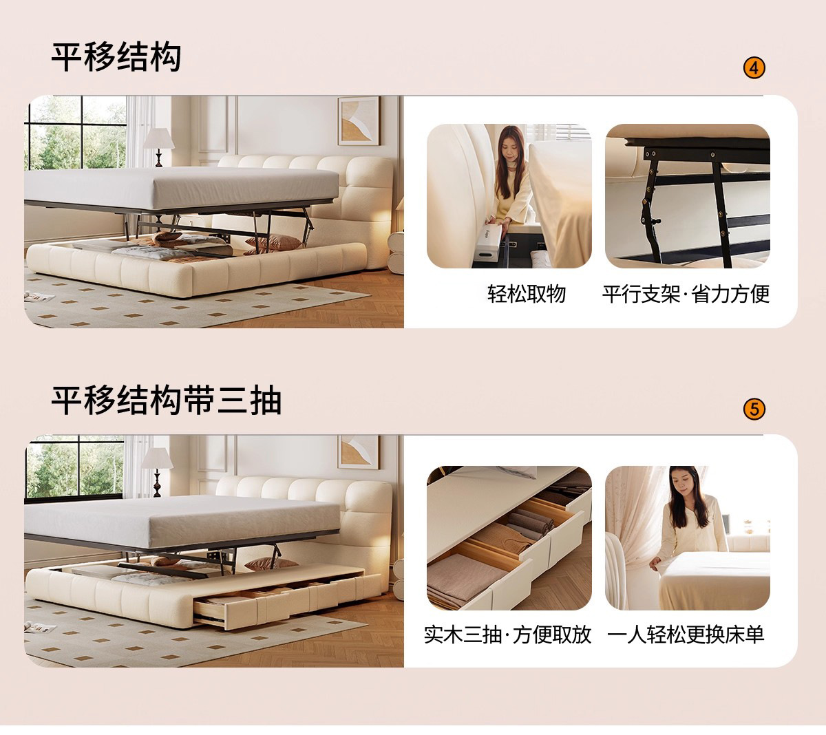 PC227 кожаная художественная кровать с тремя ящиками 22