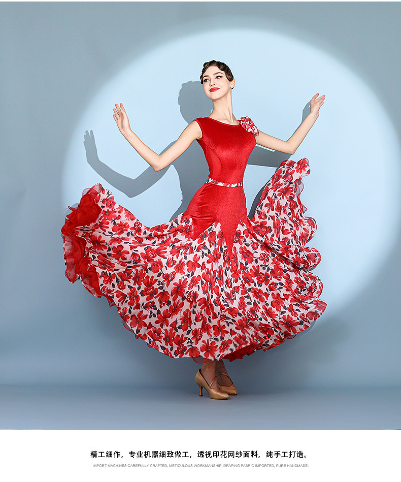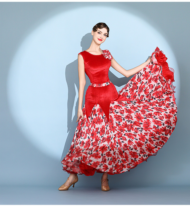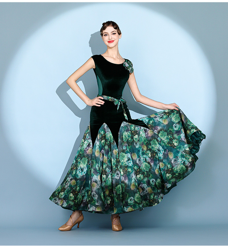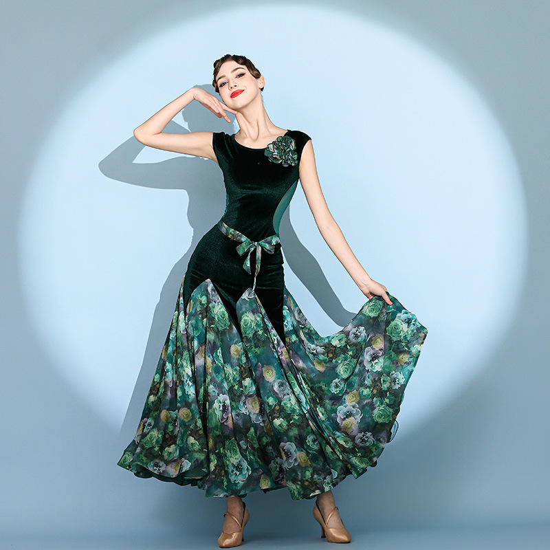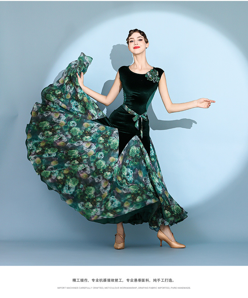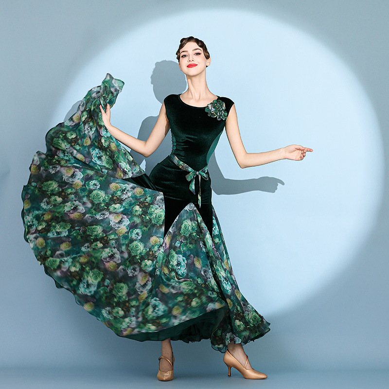 Гарден Кэролайн! Современная танцевальная юбка с принтом 2122 без рукавов бархатный национальный танцевальный спектакль вальс бальный танцевальный костюм