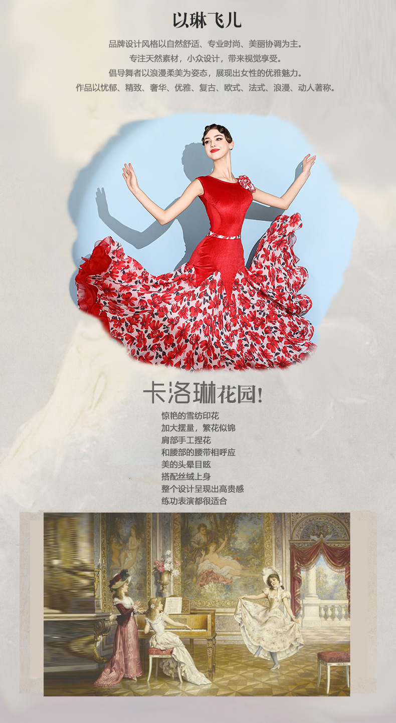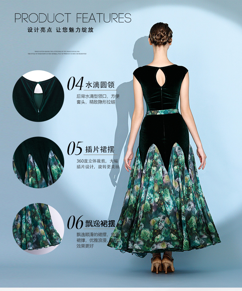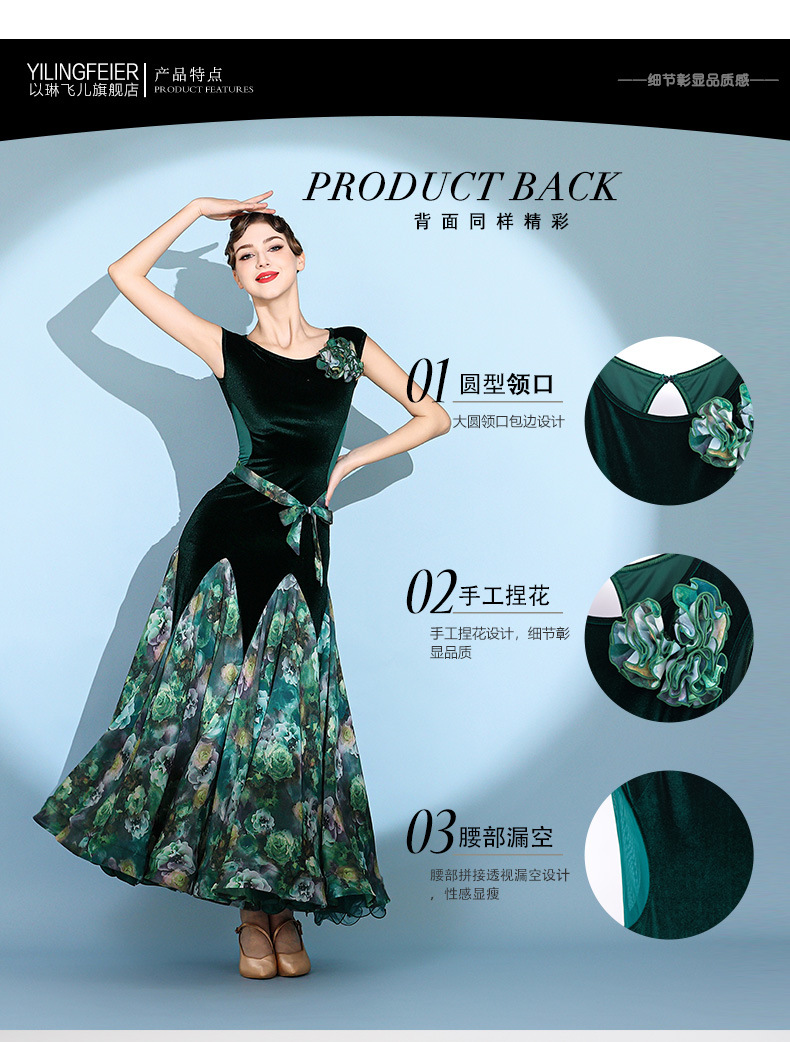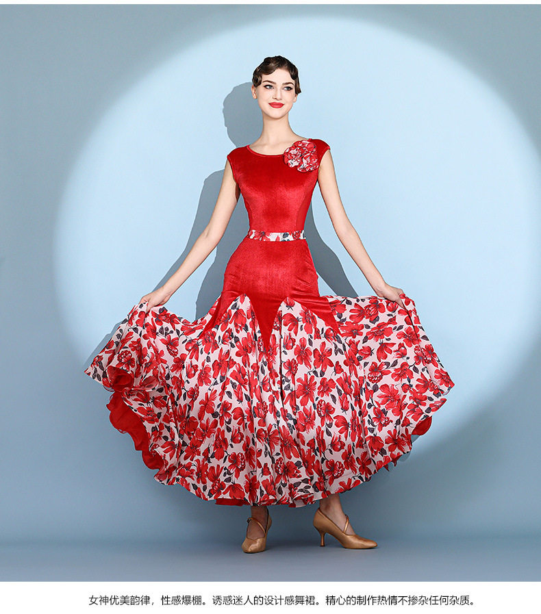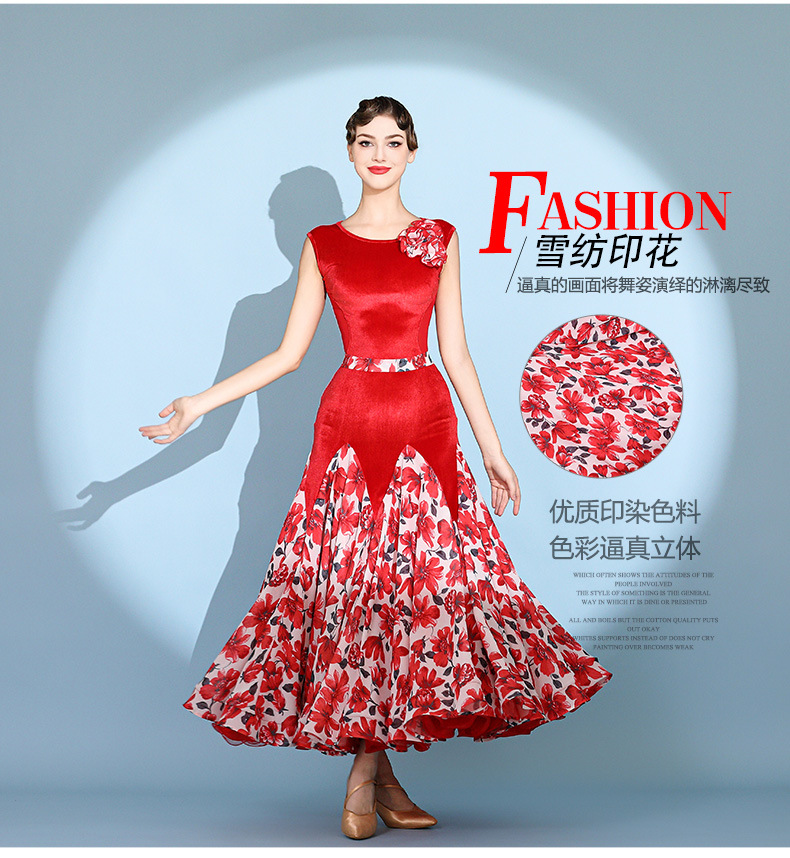 Гарден Кэролайн! Современная танцевальная юбка с принтом 2122 без рукавов бархатный национальный танцевальный спектакль вальс бальный танцевальный костюм