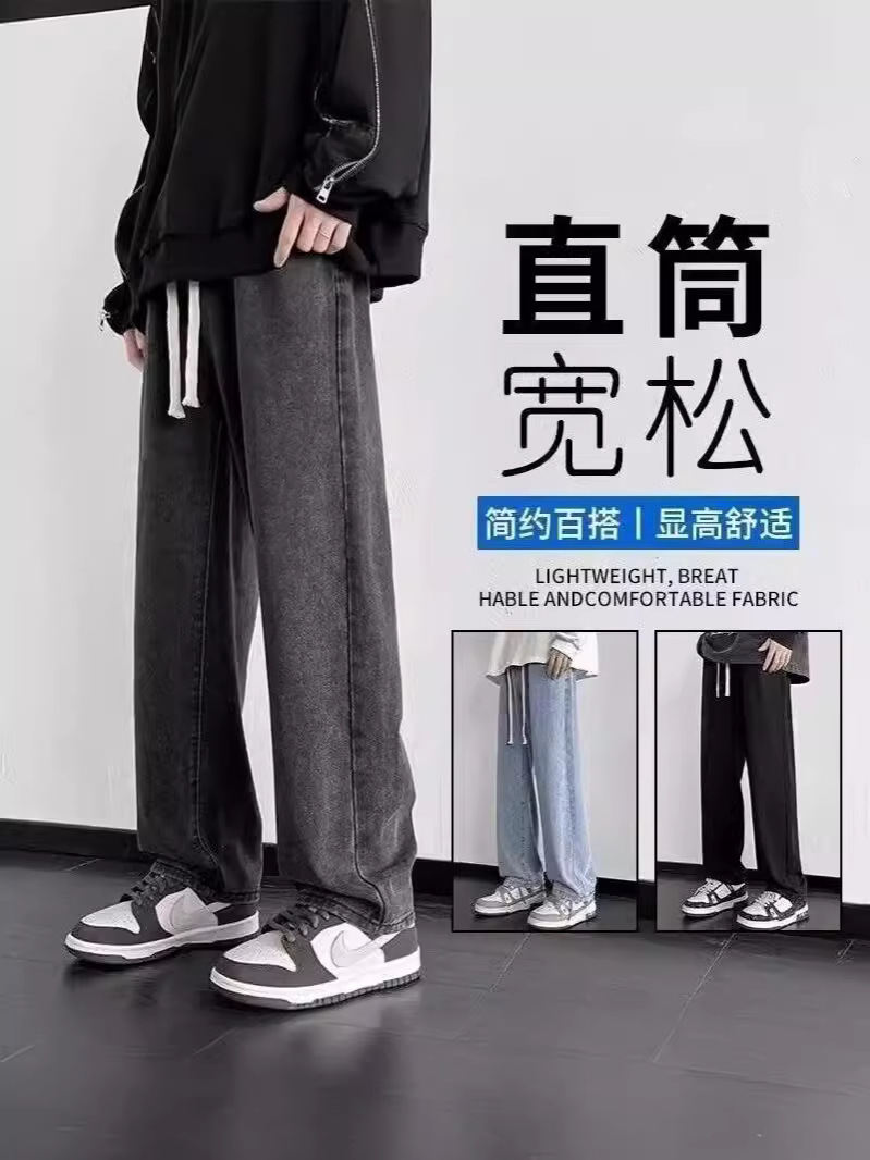 Эластичный джинсы мужские летние новые свободные прямые брюки широкие брюки прилив ретро повседневные брюки для мальчиков