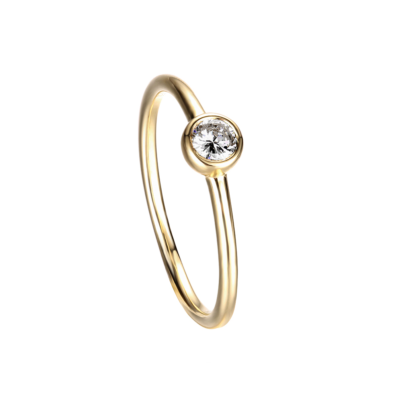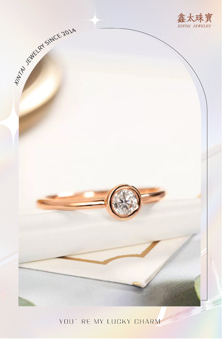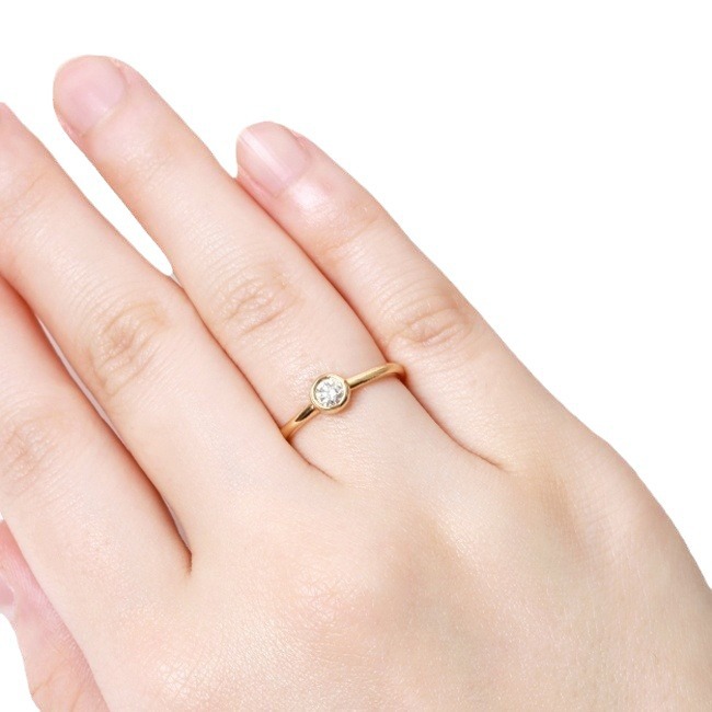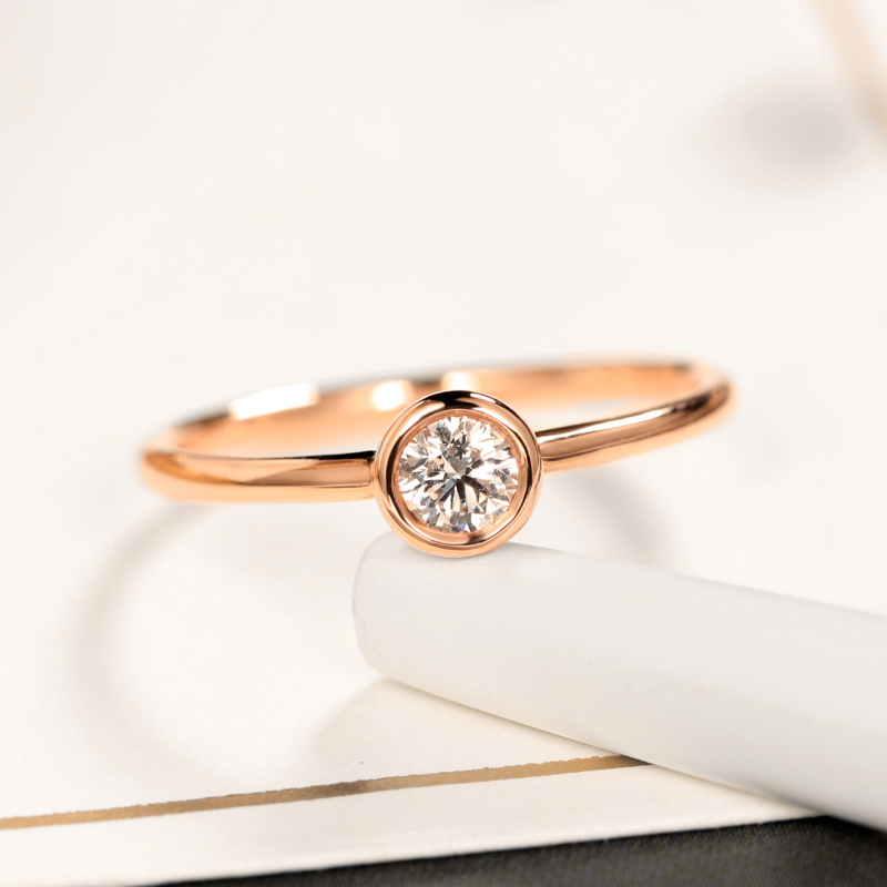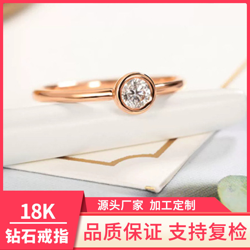Новое кольцо из 18-каратного золота с одним бриллиантом, розовое золото, простое женское кольцо с бриллиантом в безелевой оправе, большое кольцо с бриллиантом из белого золота, кольцо на заказ