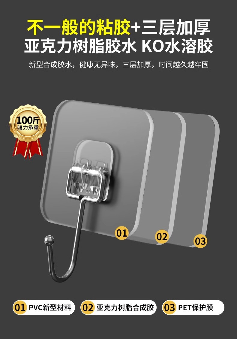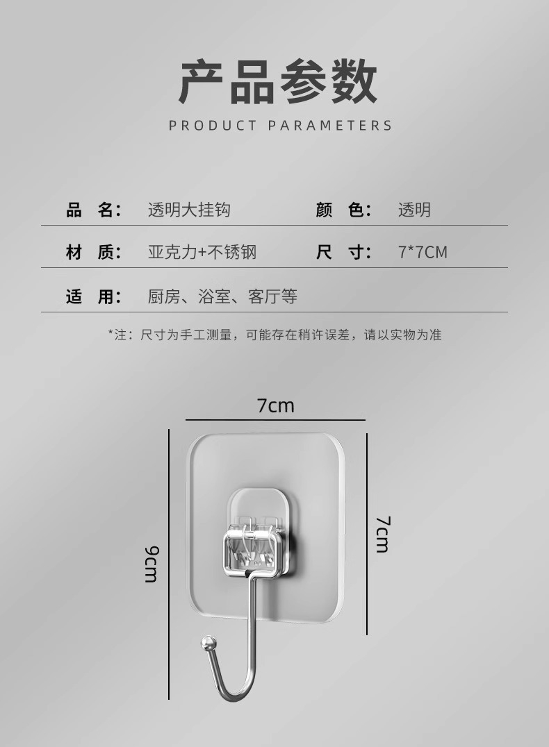 Большой крюк прочный вискоза без перфорации Кухонная ванная комната прозрачный клейкий крюк прочный несущая без следов настенная присоска подвесная крючок