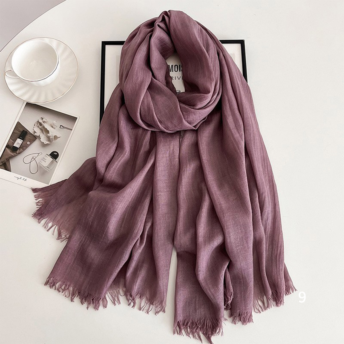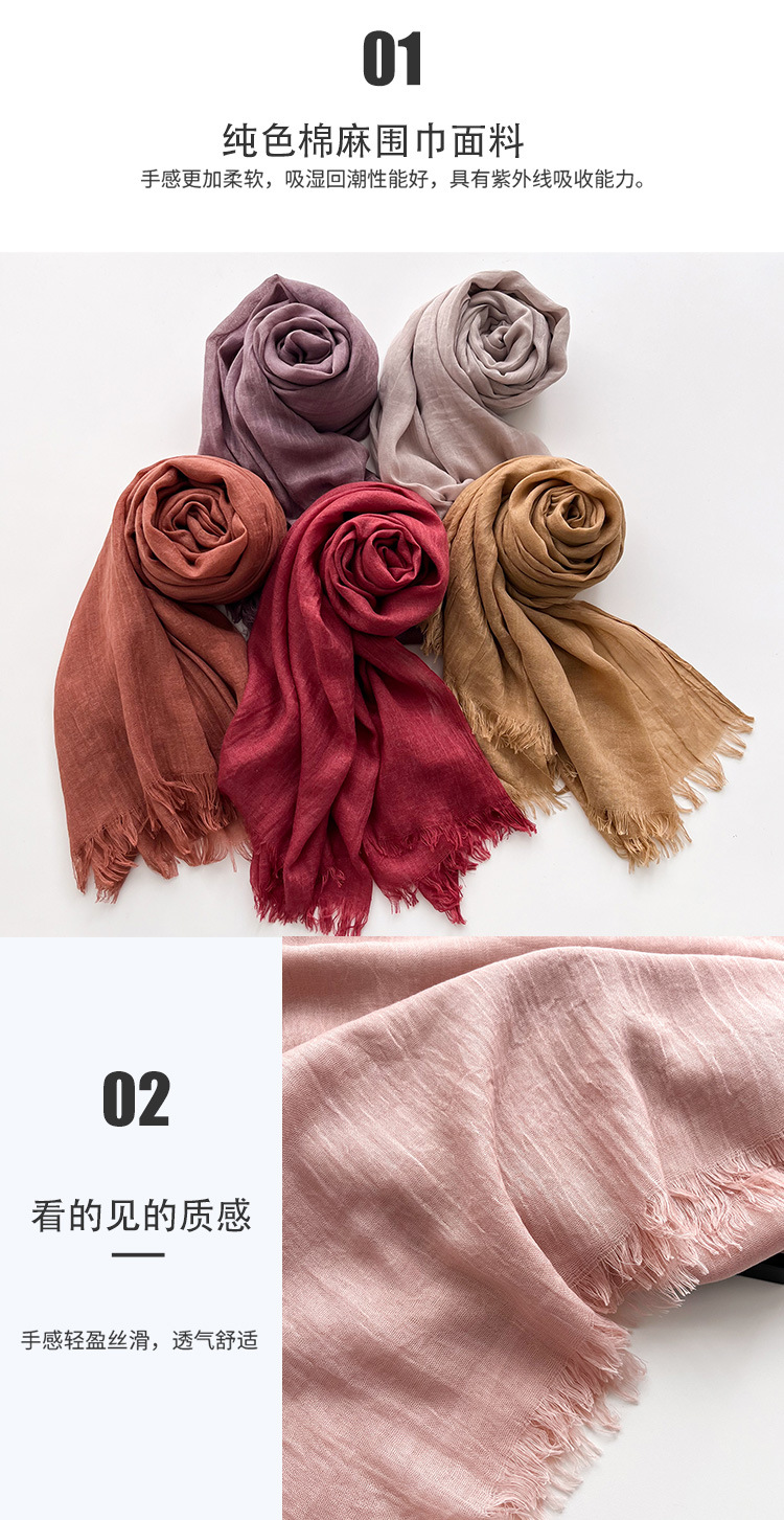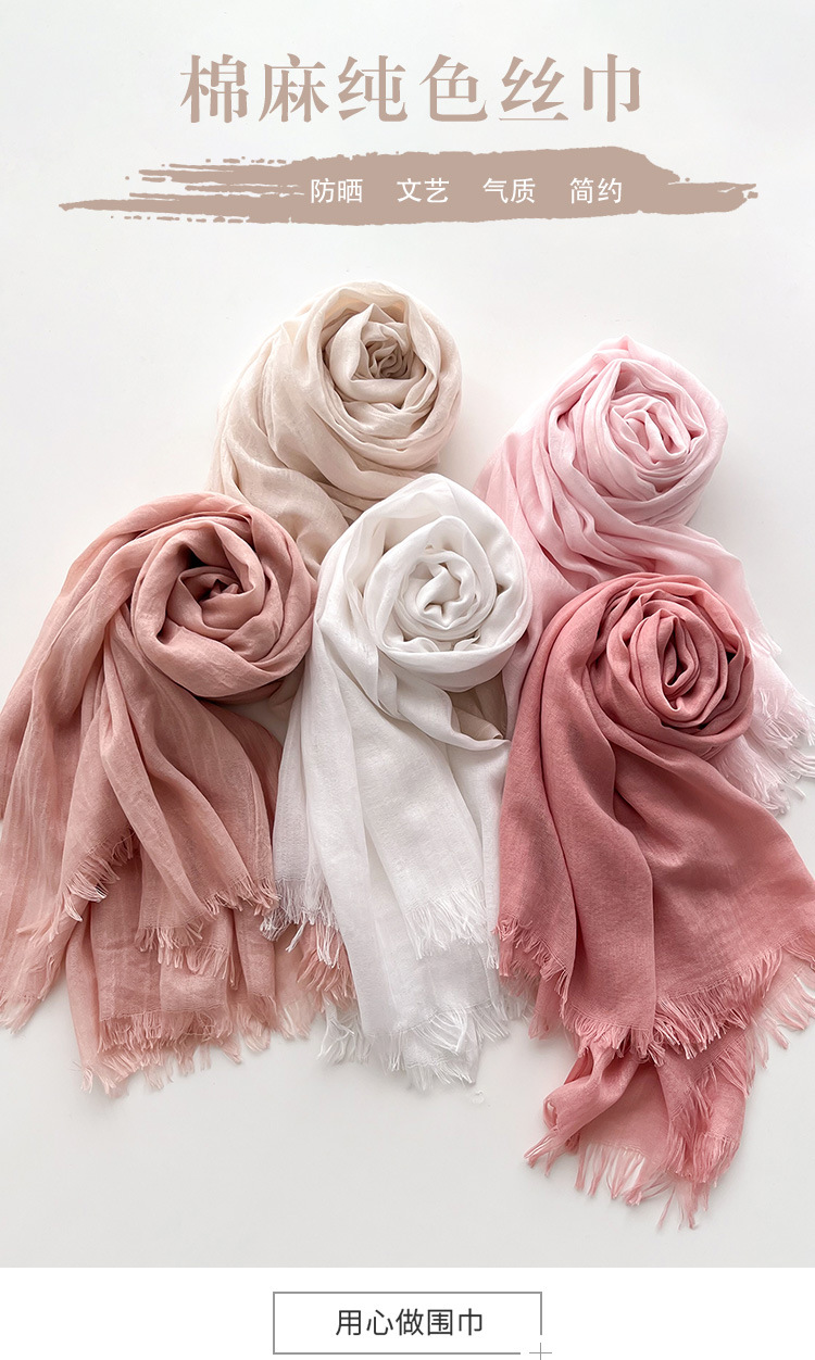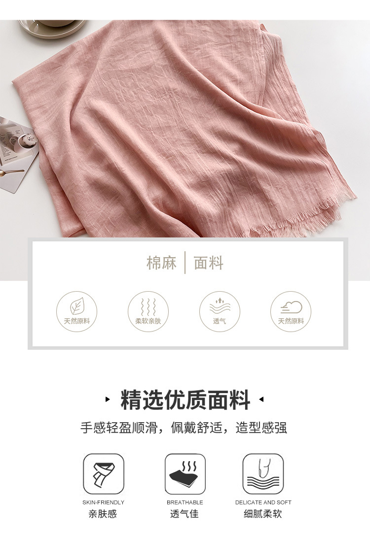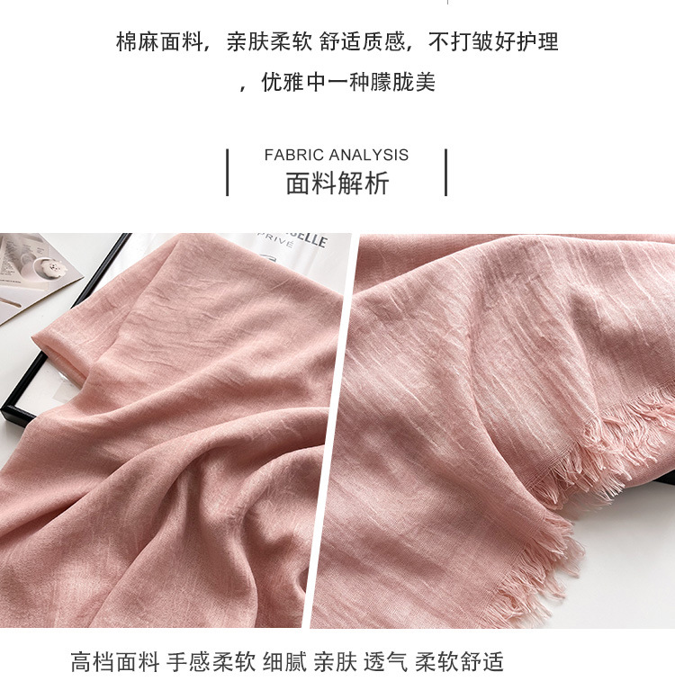 Морщинистые четыре сезона дикий женский литературный хлопок конопля шарф сплошной шелковый шарф длинный солнцезащитный крем простой шарф модный платок