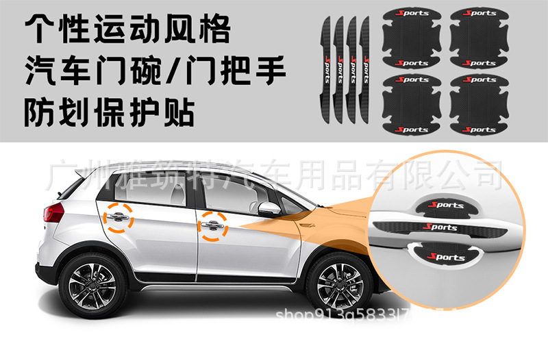 Популярные трансграничные наклейки из мягкого ПВХ для дверных ручек автомобиля, персонализированные спортивные универсальные защитные полосы от ударов и царапин для автомобиля.