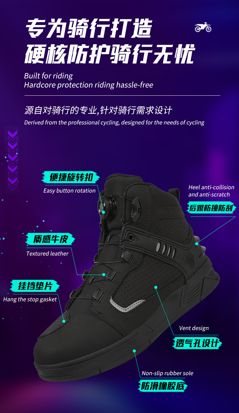 Кожаные мотоциклетные туфли для верховой езды Мужские рыцари четыре сезона внедорожные мотоциклетные сапоги гоночные сапоги