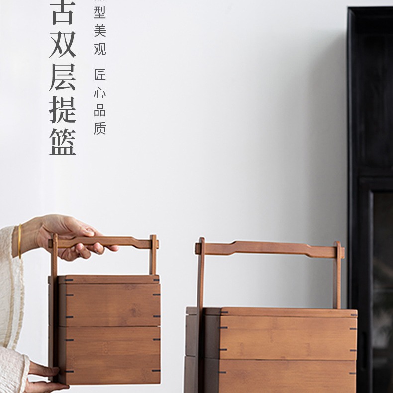 Двухслойная коробка для хранения закусок в стиле ретро, китайская коробка для чая, бамбуковый уличный чемодан, подарочная многослойная коробка для еды, чайный сервиз, аксессуары