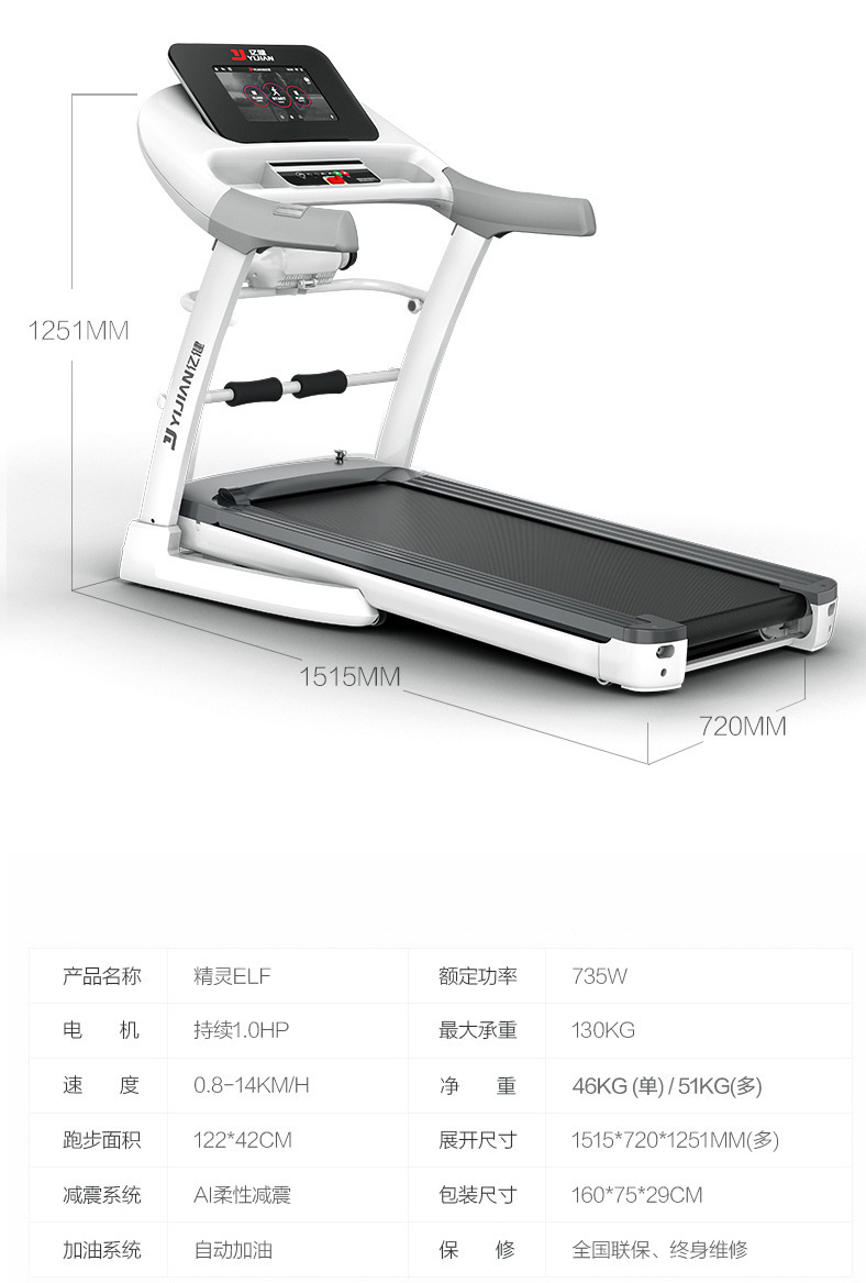 Беговая дорожка Yijian Elf, бытовая многофункциональная маленькая ультра-тихая складная электрическая ходьба для похудения, фитнес-оборудование