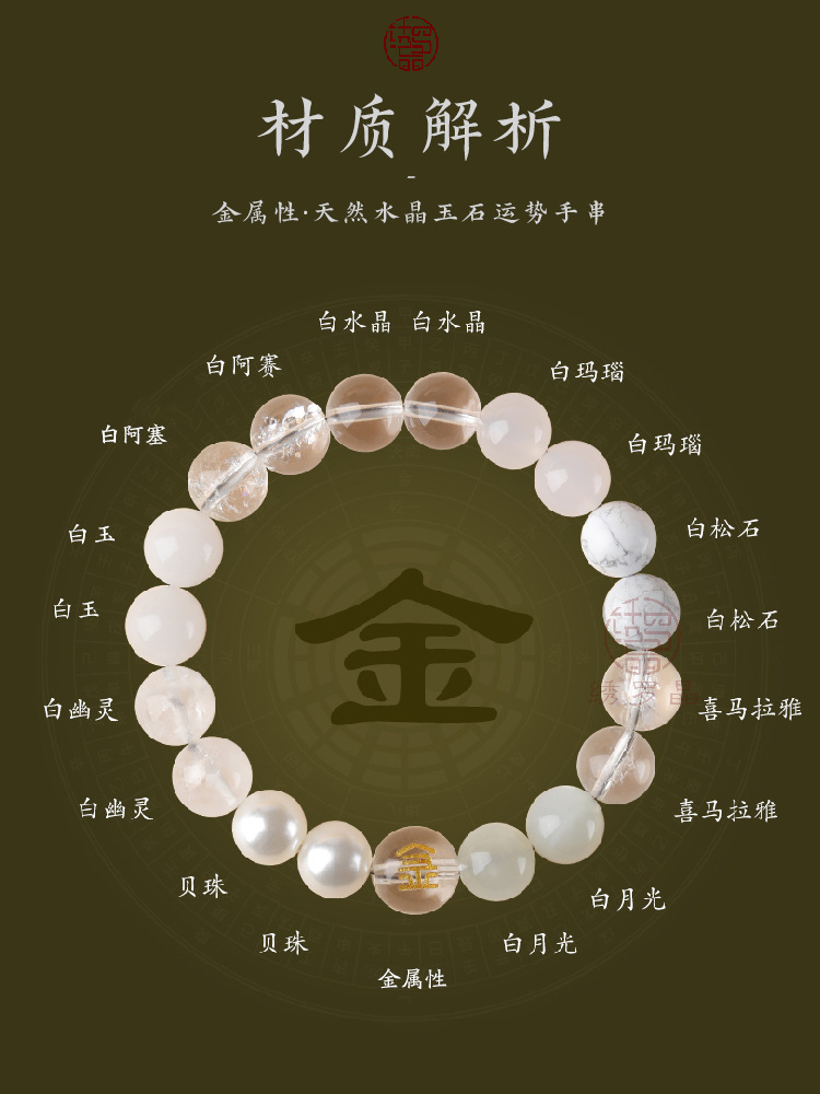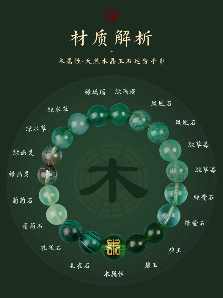 Аметист; Турмалин; малахит; Хэтянь Нефрит; жемчуг; бирюза; лунный камень; лазурит; чайный кристалл; зеленый агат; зеленый кристалл призрака; амазонит; гранат