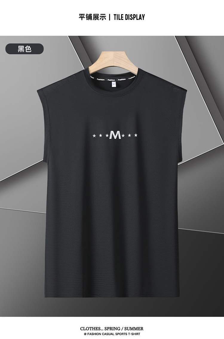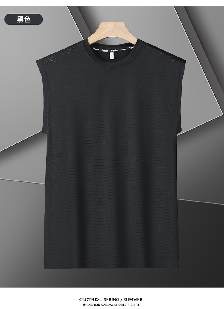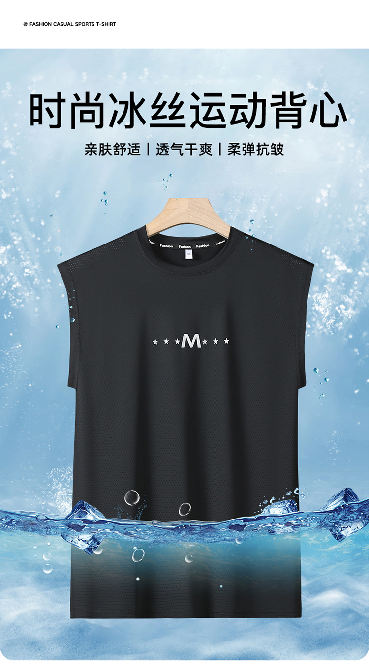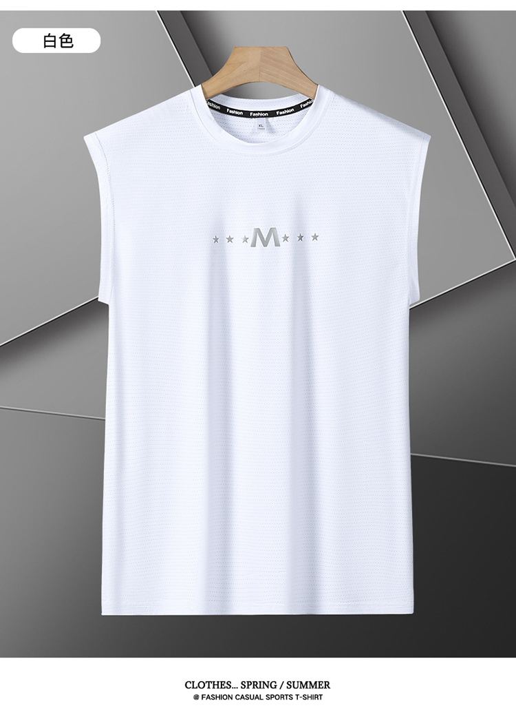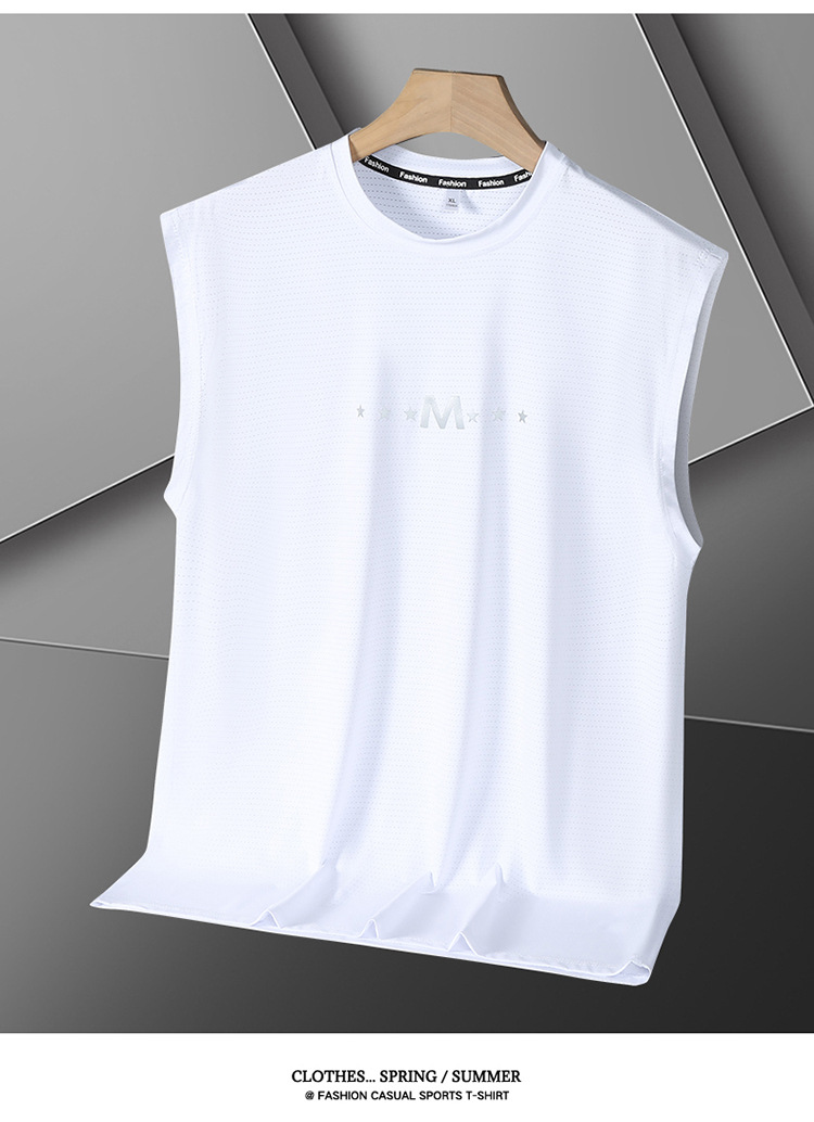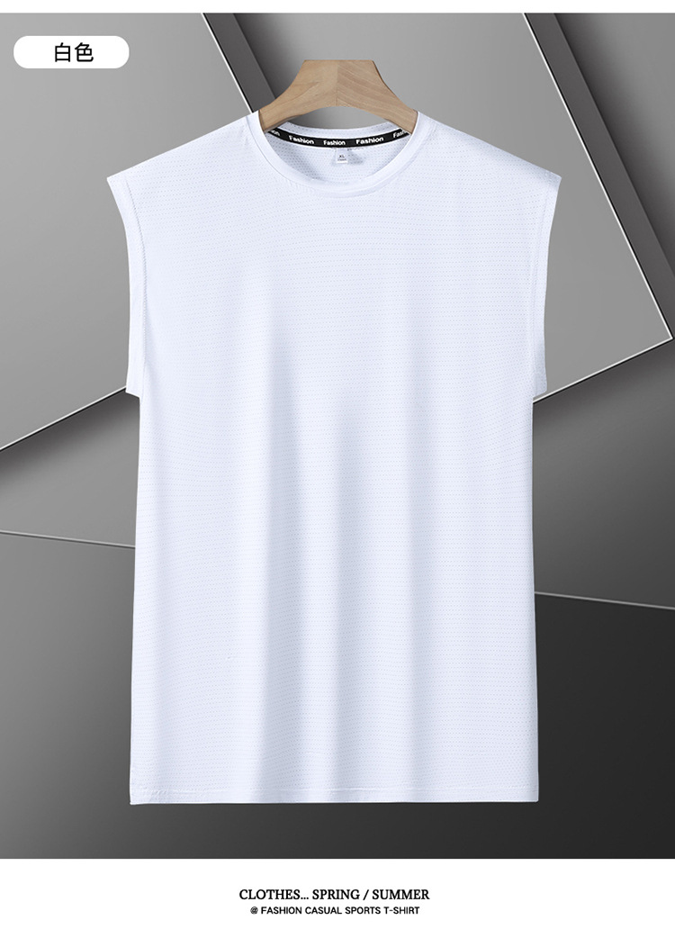Футболка без рукавов Мужская футболка со льдом свободная жилет мужская фитнес-футболка плюс большой размер спортивные плечо баскетбольная футболка белый жилет