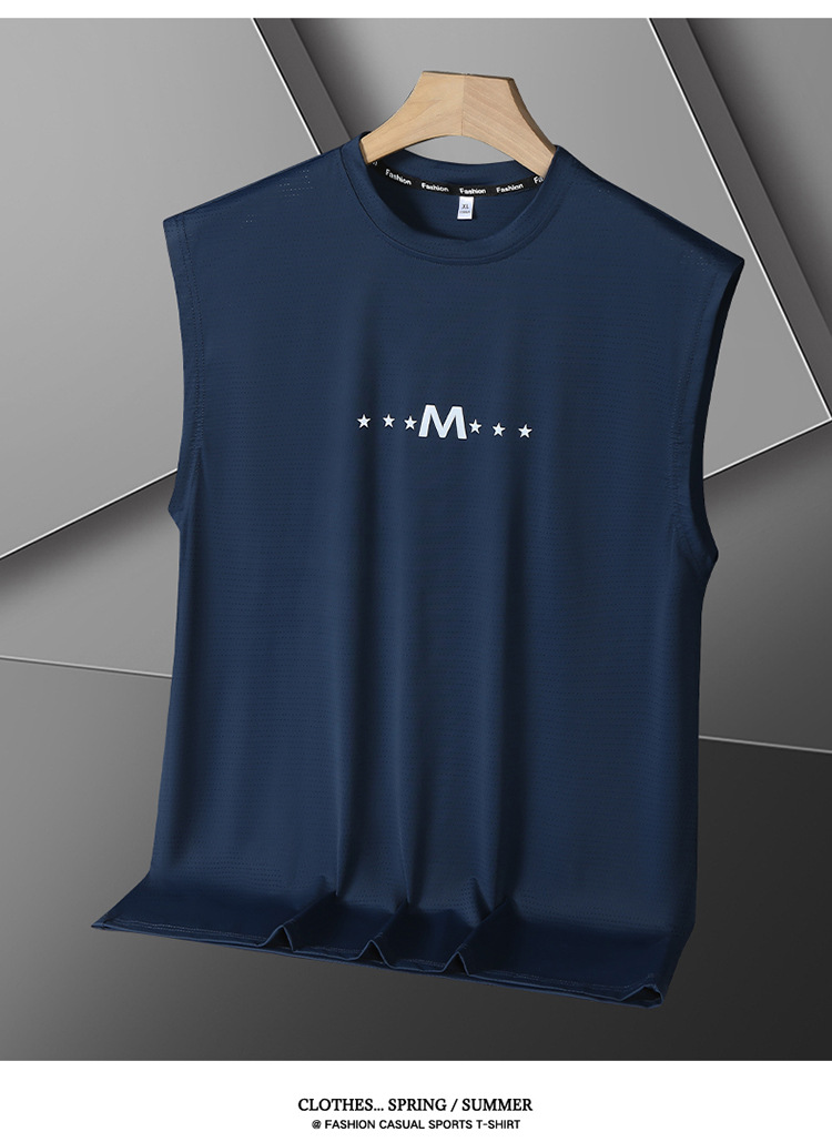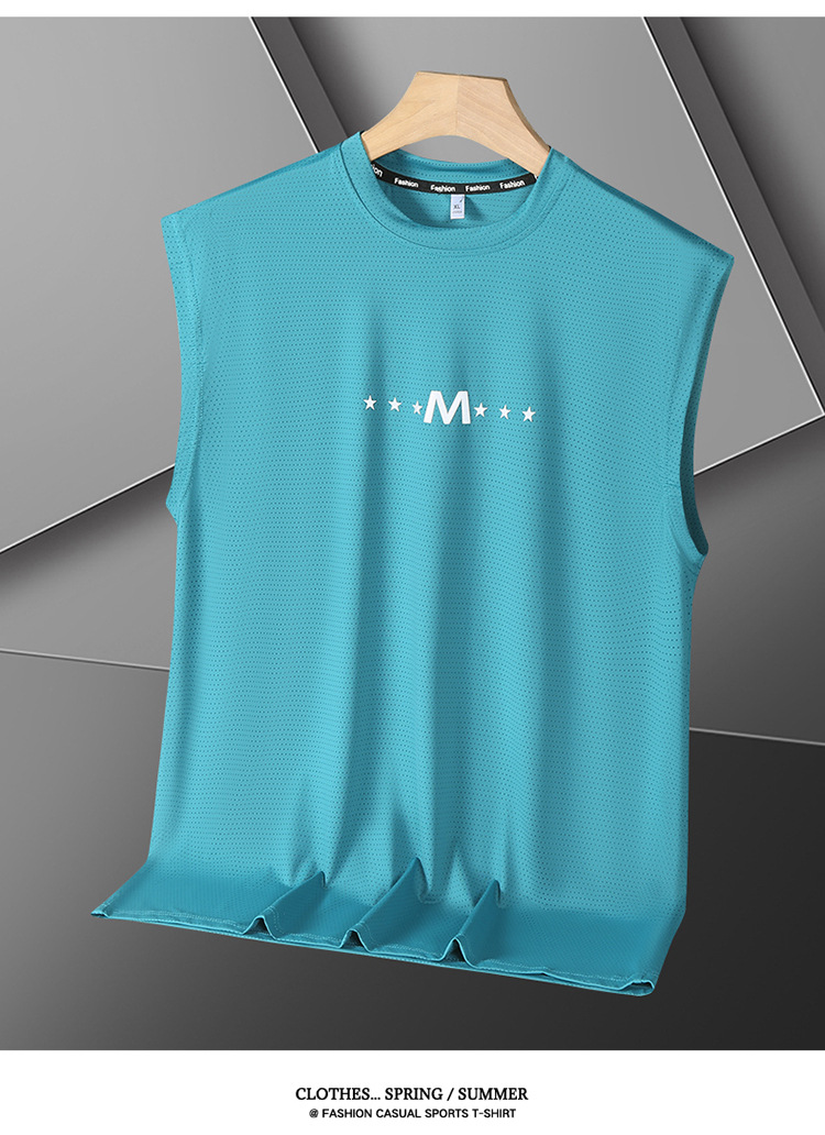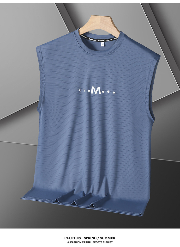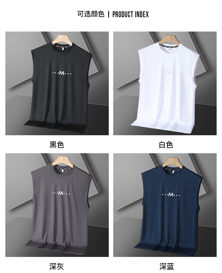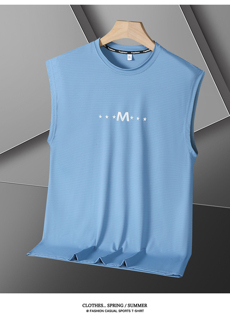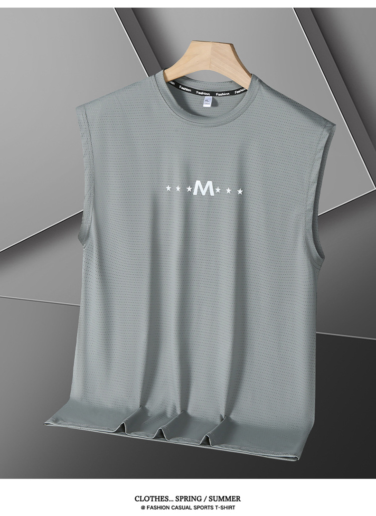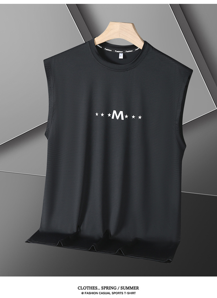 Футболка без рукавов Мужская футболка со льдом свободная жилет мужская фитнес-футболка плюс большой размер спортивные плечо баскетбольная футболка белый жилет