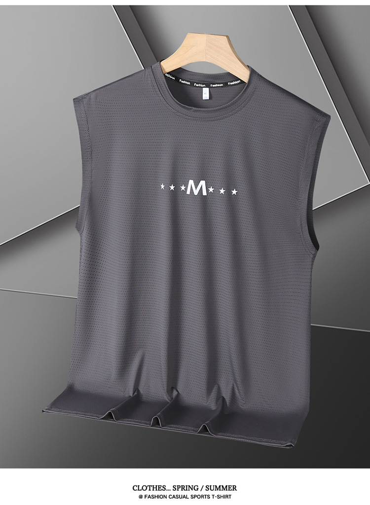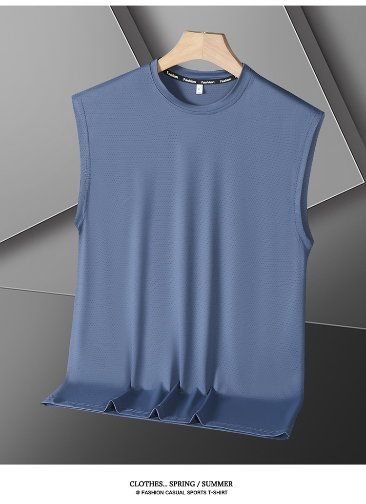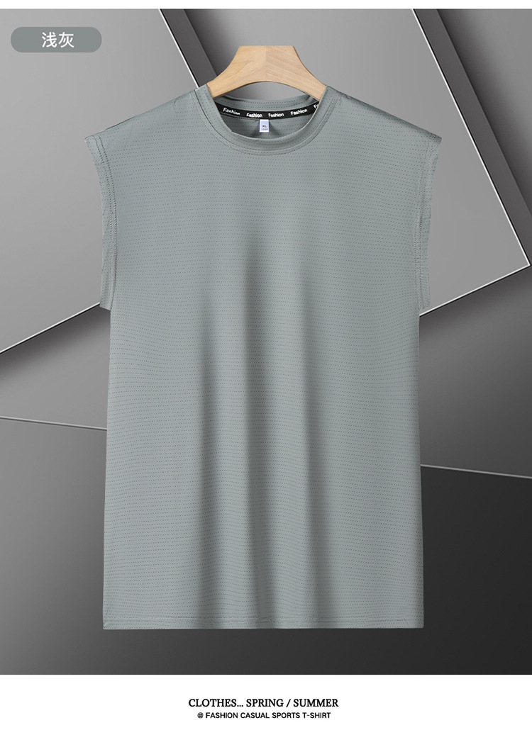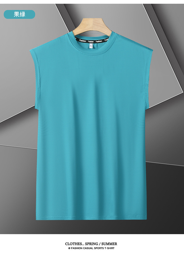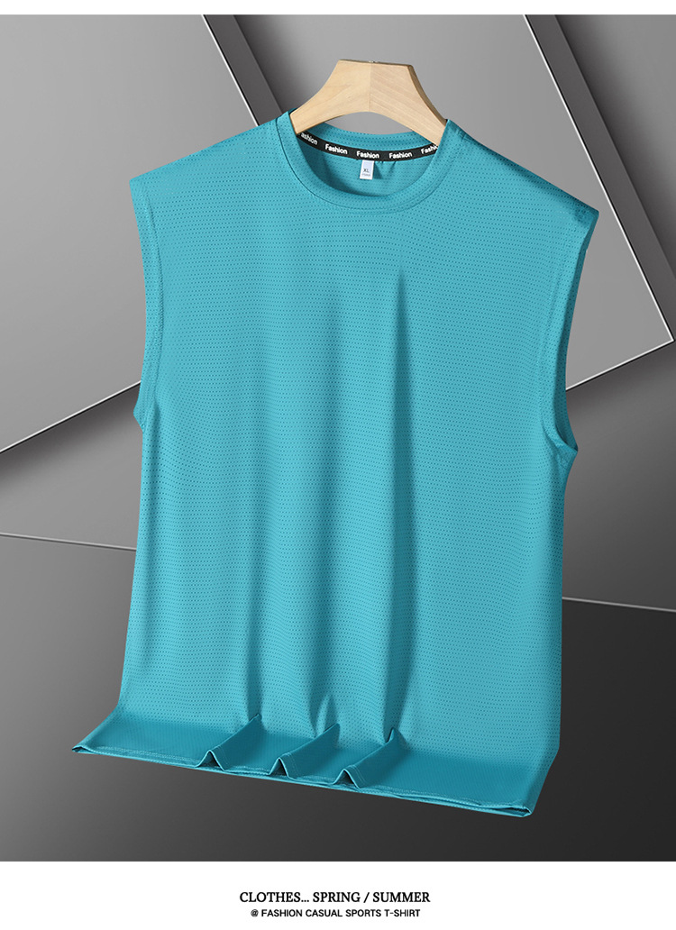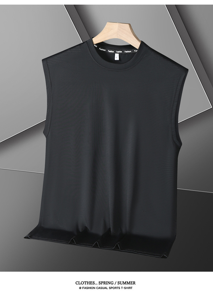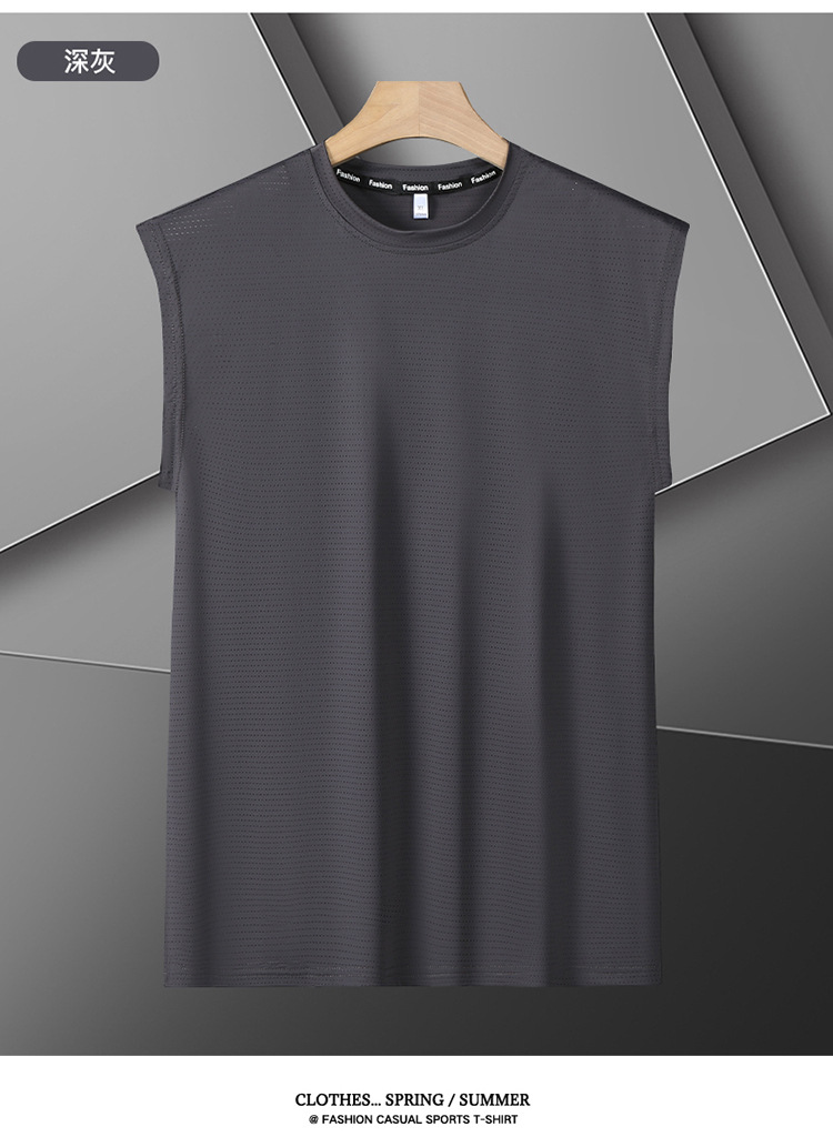 Футболка без рукавов Мужская футболка со льдом свободная жилет мужская фитнес-футболка плюс большой размер спортивные плечо баскетбольная футболка белый жилет