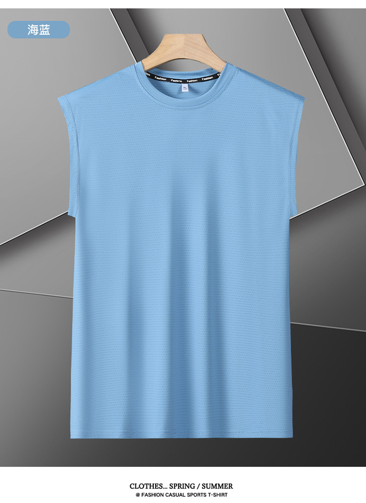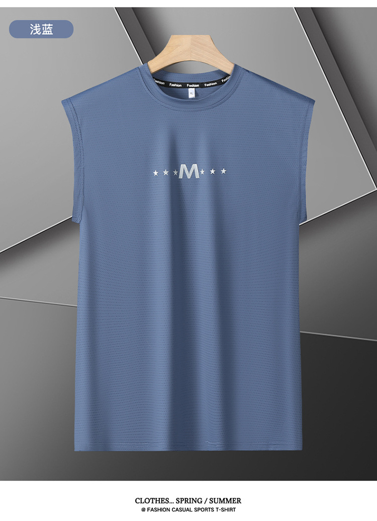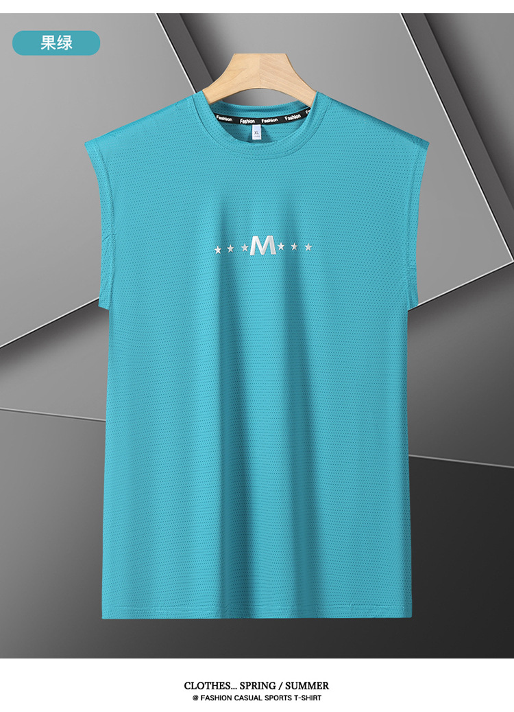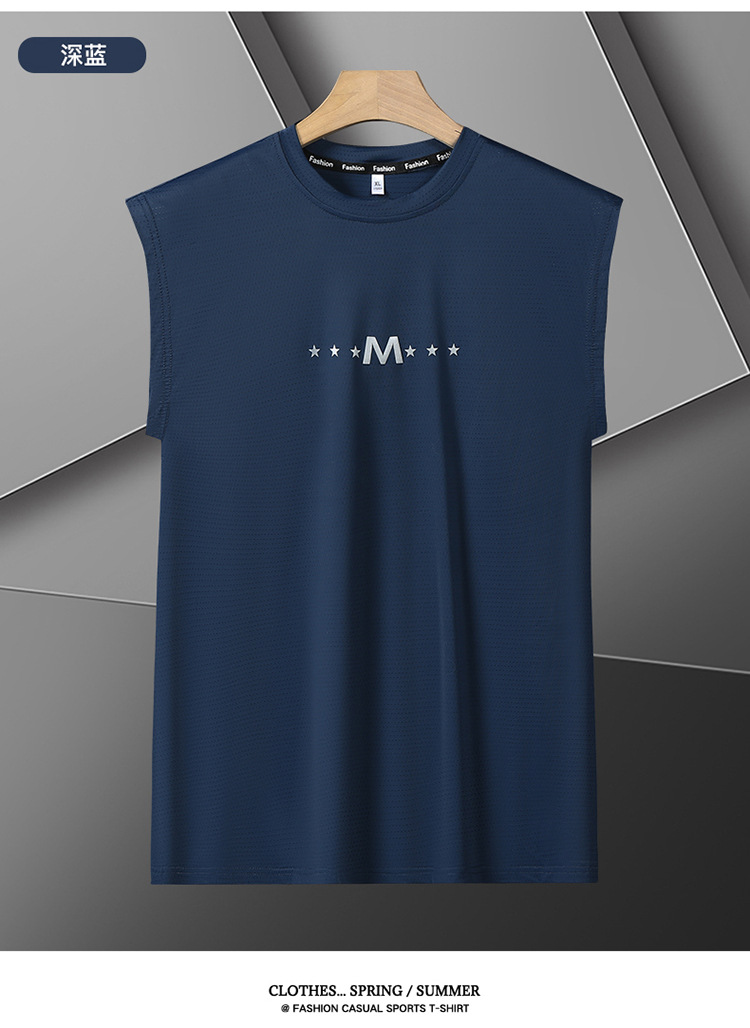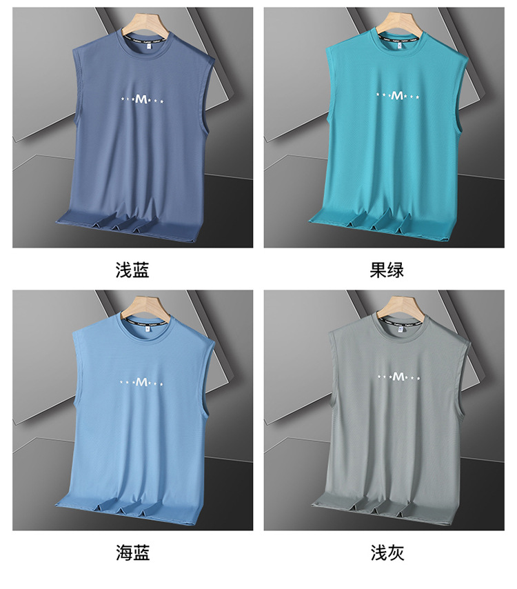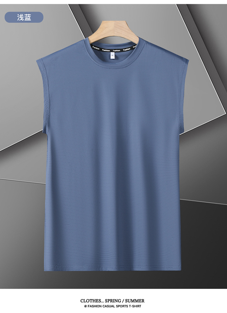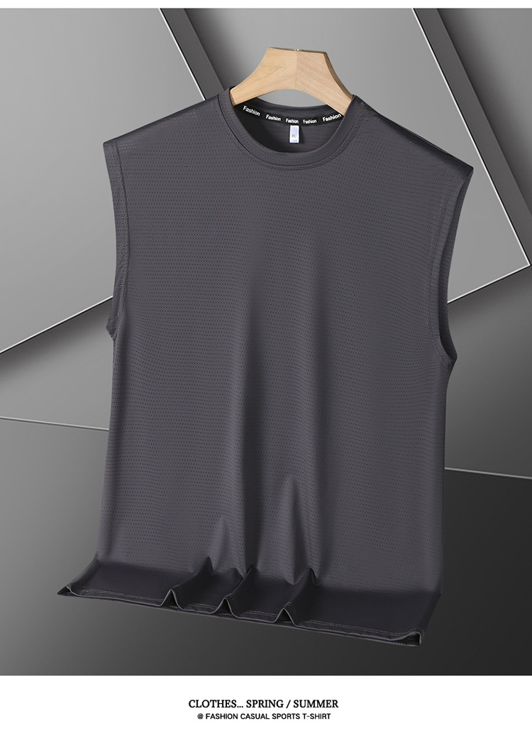 Футболка без рукавов Мужская футболка со льдом свободная жилет мужская фитнес-футболка плюс большой размер спортивные плечо баскетбольная футболка белый жилет
