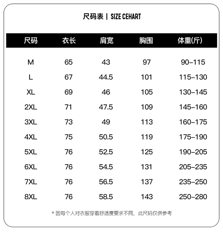 M; L; XL; 2XL; 3XL; 4XL; 5XL; 6XL; 7XL; 8XL