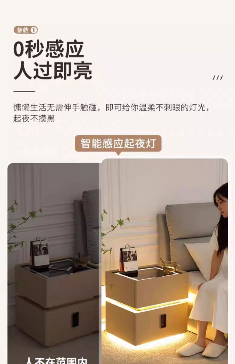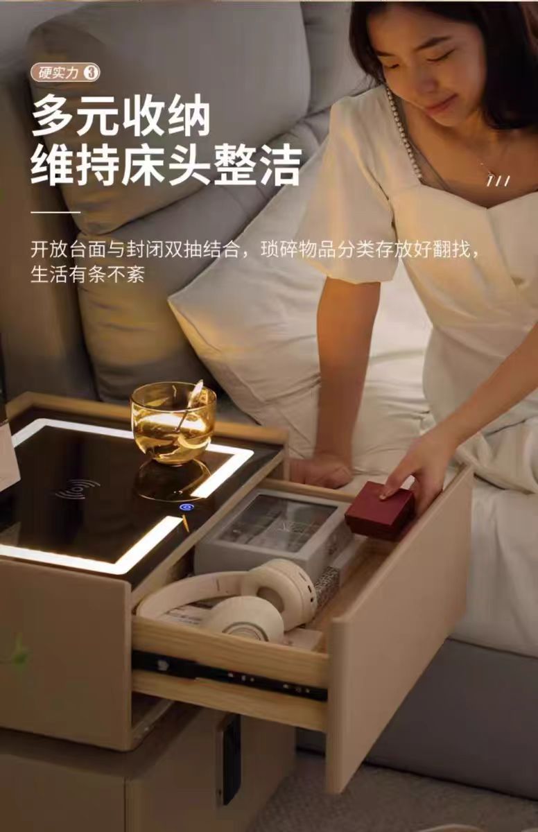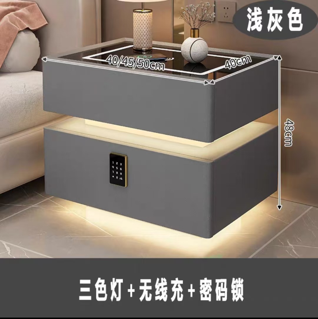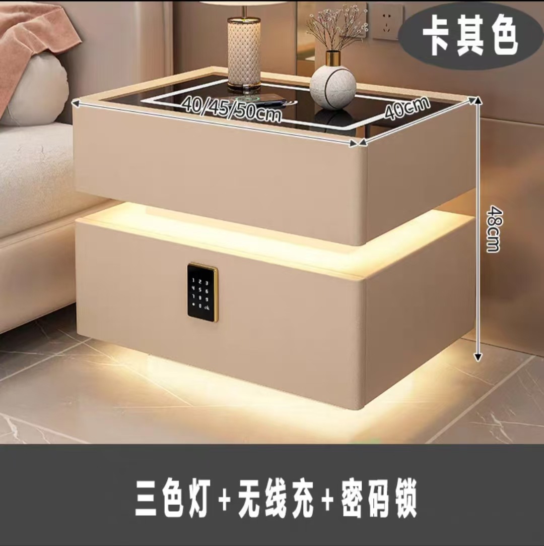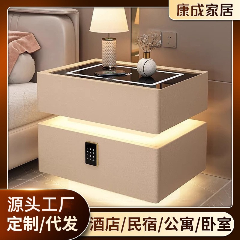 Оптовая продажа, подвесная умная прикроватная тумбочка, простая современная интернет-знаменитость, свет из цельного дерева, роскошный кремовый стиль, многофункциональная прикроватная тумбочка с замком