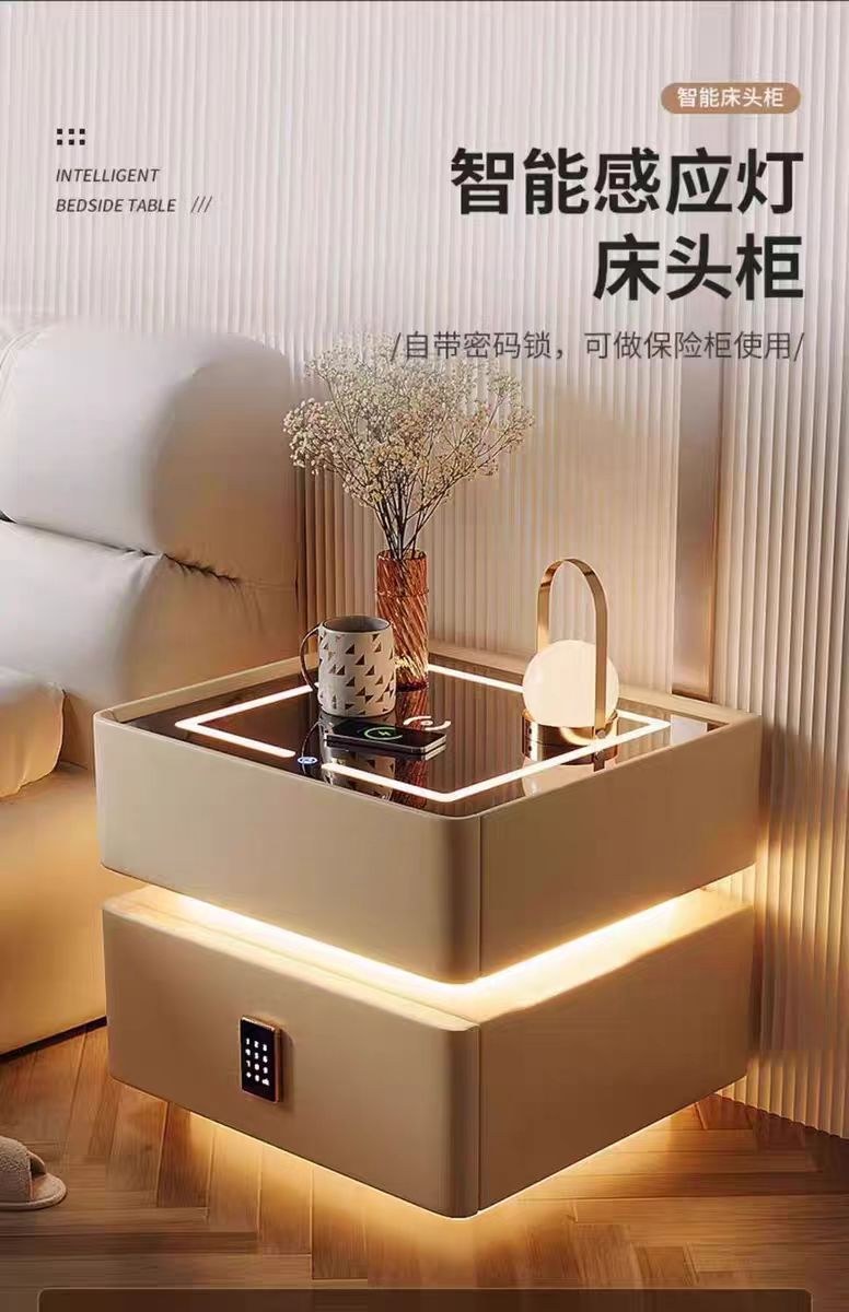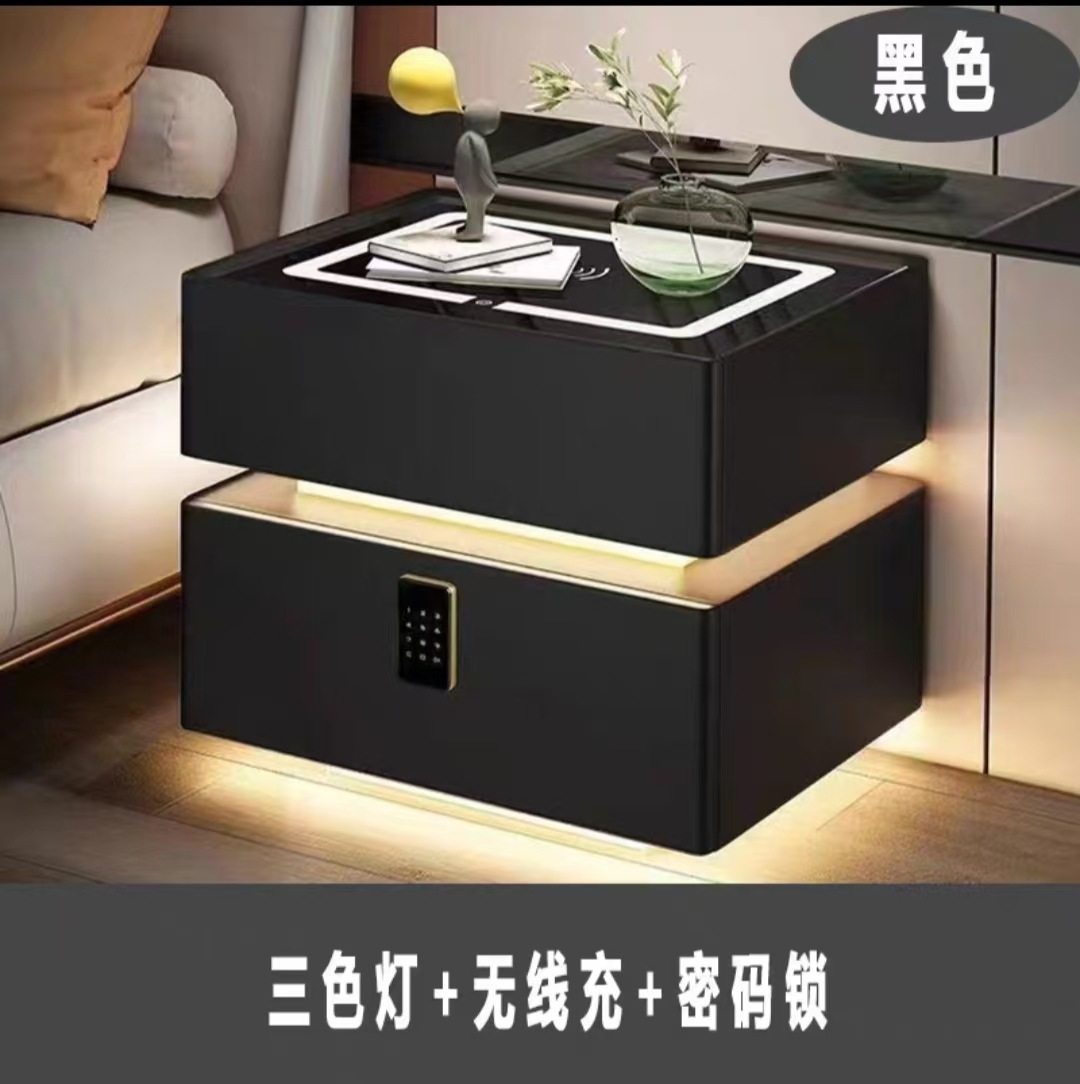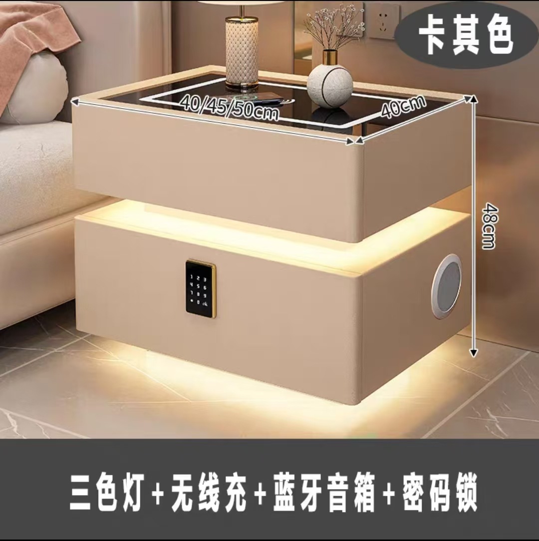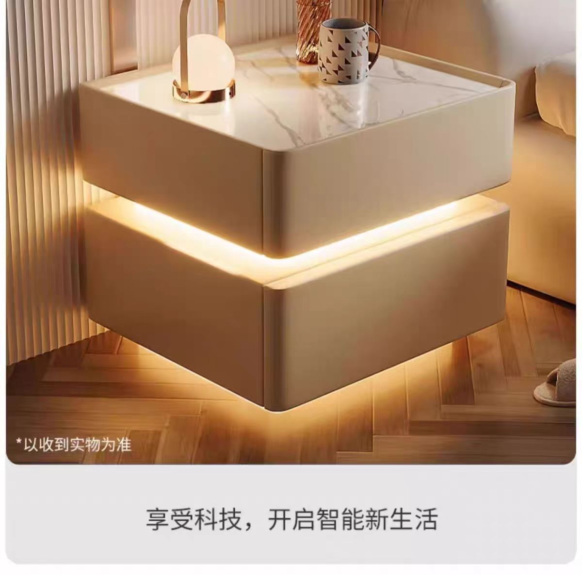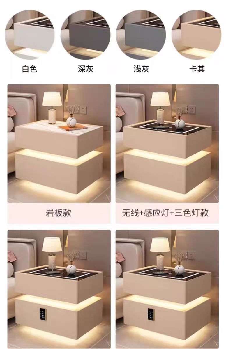 Оптовая продажа, подвесная умная прикроватная тумбочка, простая современная интернет-знаменитость, свет из цельного дерева, роскошный кремовый стиль, многофункциональная прикроватная тумбочка с замком