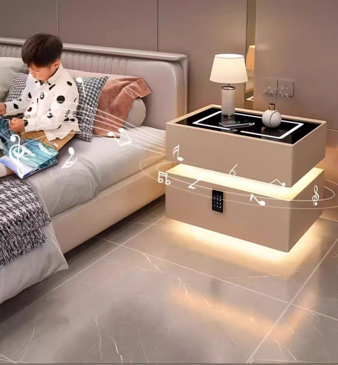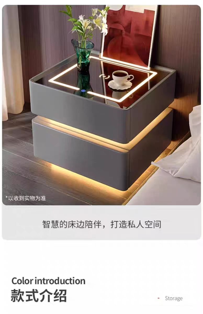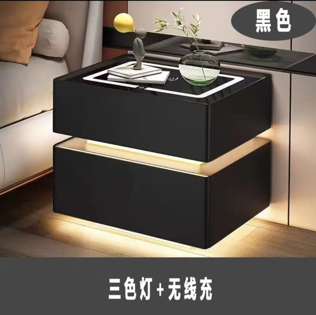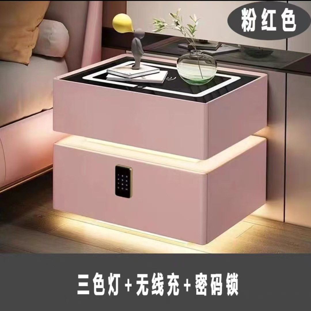 Оптовая продажа, подвесная умная прикроватная тумбочка, простая современная интернет-знаменитость, свет из цельного дерева, роскошный кремовый стиль, многофункциональная прикроватная тумбочка с замком